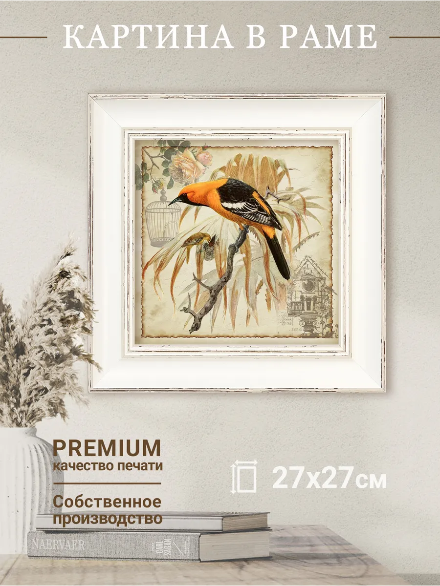 Картина в раме 27х27 см с птицами — стильный декор для интерьера