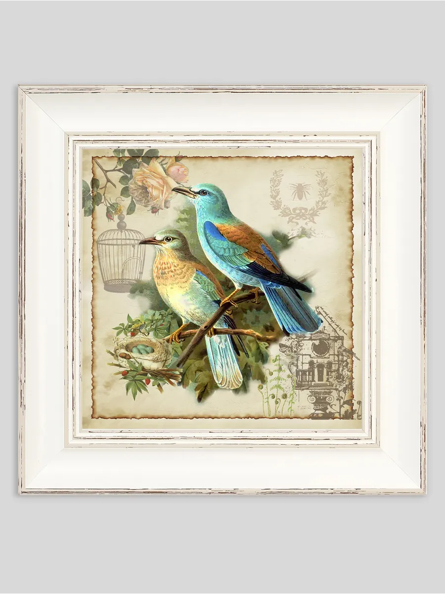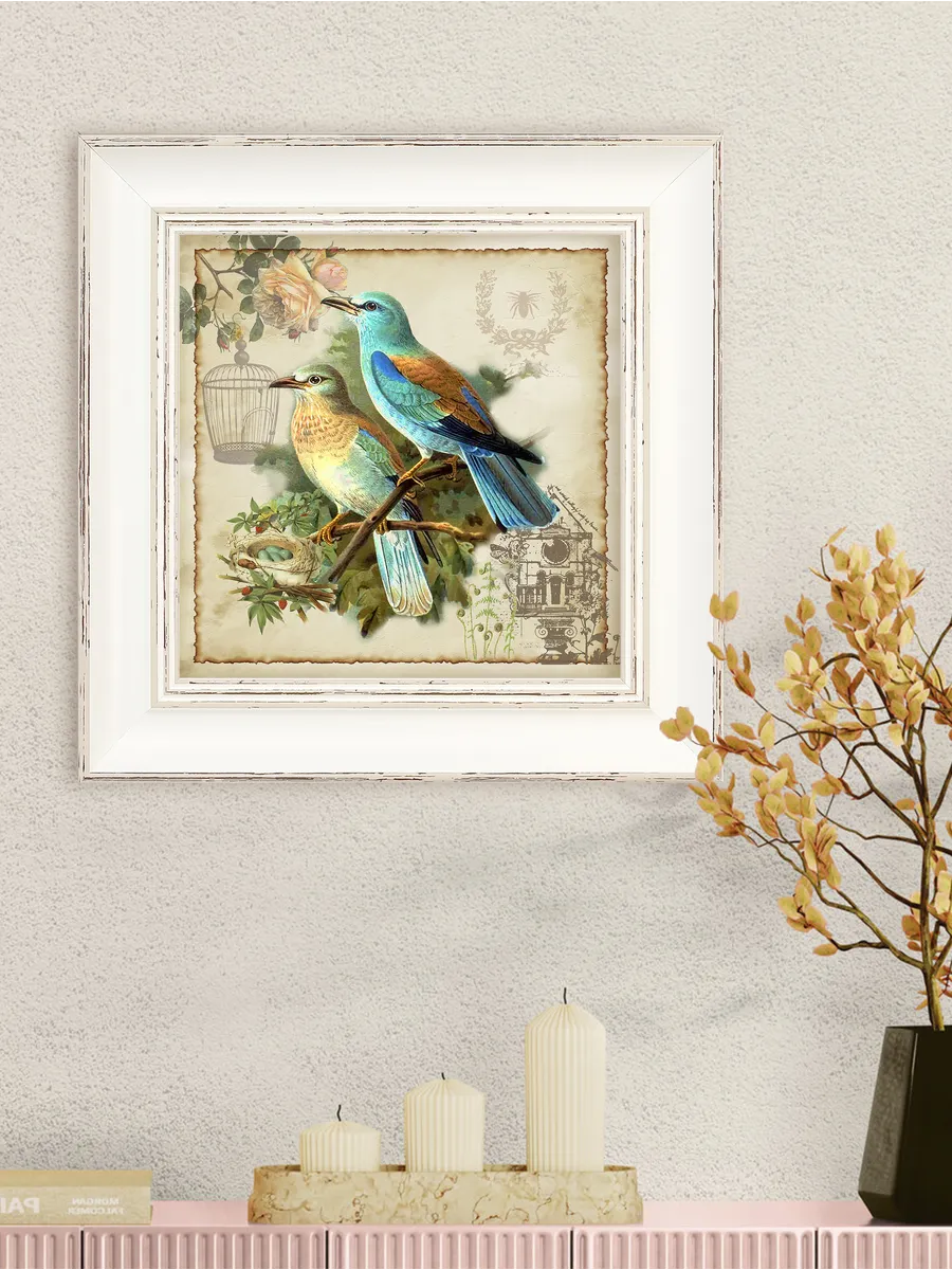 Картина в раме 27х27 см с птицами — стильный декор для интерьера