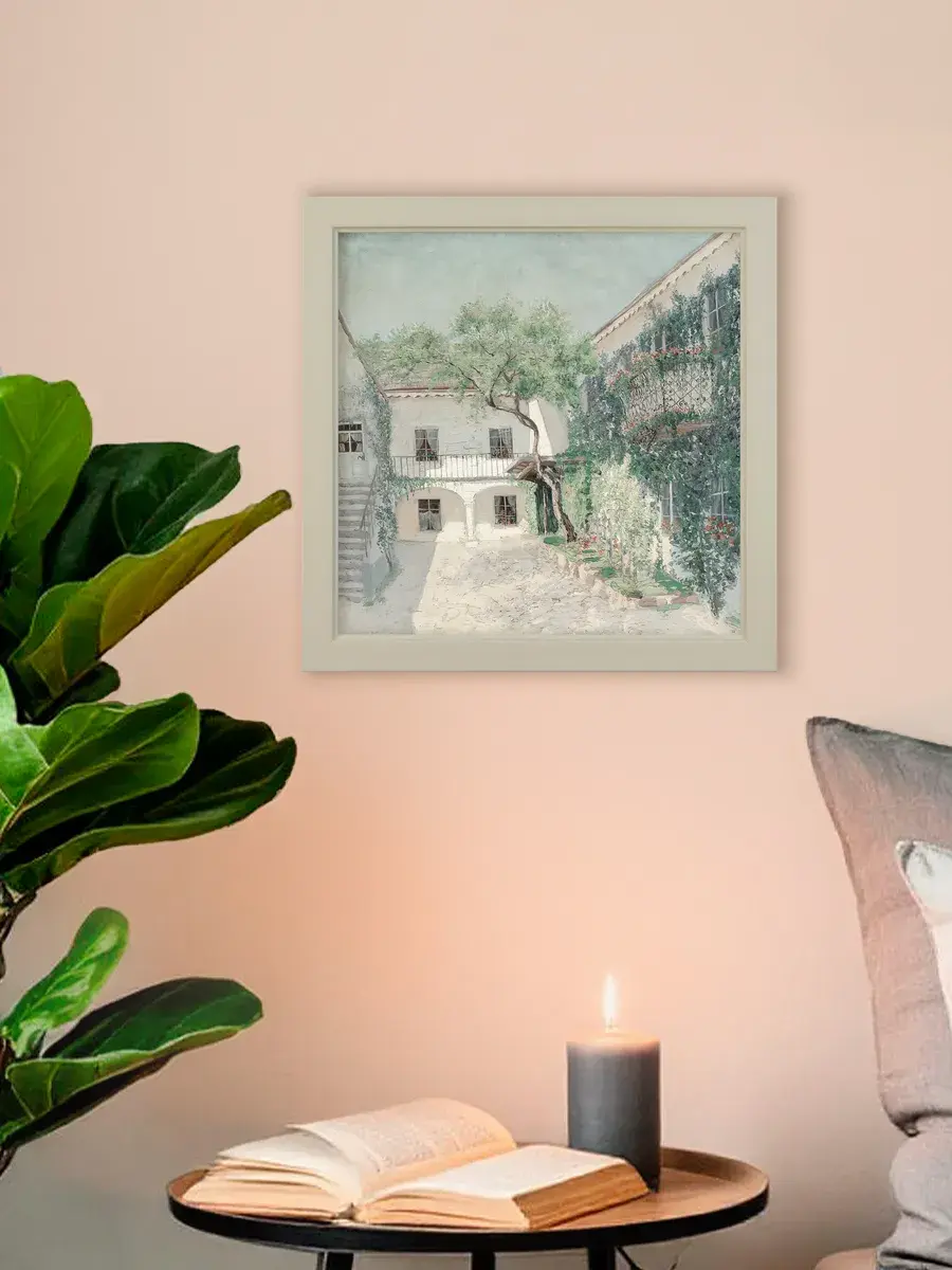 Удивительно красивая картина на натуральном холсте "Южный дворик" от Elenadecor размером 27*27 см станет прекрасным дополнением к любому интерьеру, наполняя его атмосферой спокойствия и умиротворения. Нежные пастельные тона рисунка словно переносят вас в атмосферу отпуска, где легкий бриз ласкает кожу, а волны шепчут свои успокаивающие мелодии. Картина на хлопковом холсте, наклеенном на ХДФ, уже оформлена в раму и снабжена крепежом для удобства установки. Она станет прекрасным подарком для мамы, любимой или подруги на день рождения, Новый год или день матери, наполняя их дом релаксом и гармонией.