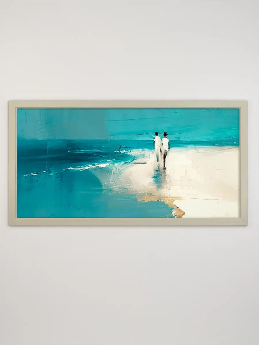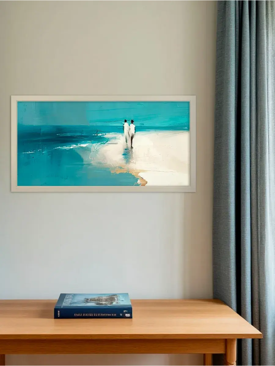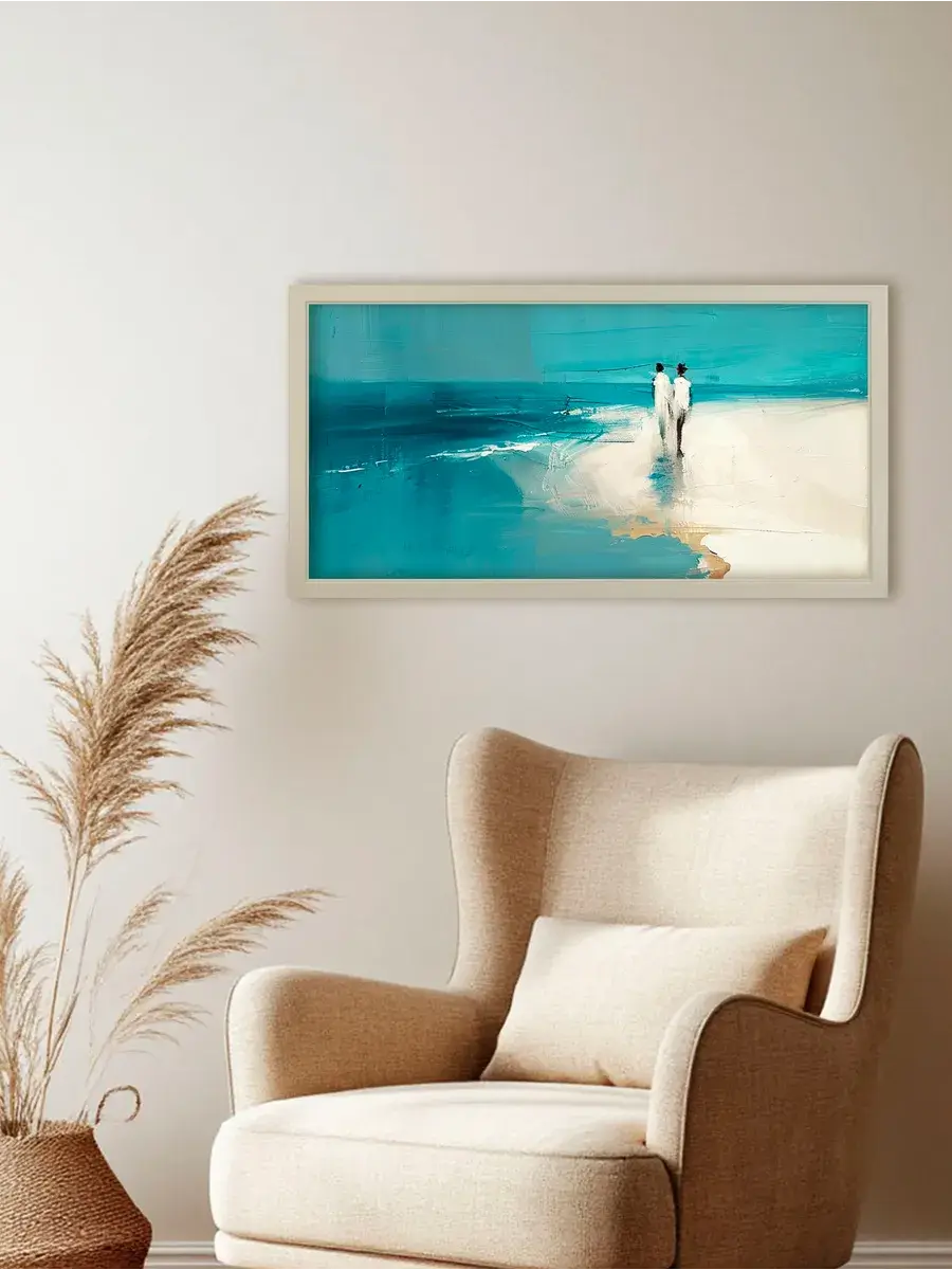 Удивительно красивая картина на натуральном холсте "Двое на берегу" от Elenadecor размером 33x63 см станет прекрасным дополнением к любому интерьеру, наполняя его атмосферой спокойствия и умиротворения. Яркие бирюзовые и молочные тона абстрактного рисунка словно переносят вас на берег моря, где легкий бриз ласкает кожу, а волны шепчут свои успокаивающие мелодии. Картина на хлопковом холсте, наклеенном на ХДФ, уже оформлена в раму и снабжена крепежом для удобства установки. Она станет прекрасным подарком для мамы, любимой или подруги на день рождения, Новый год или день матери, наполняя их дом релаксом и гармонией.