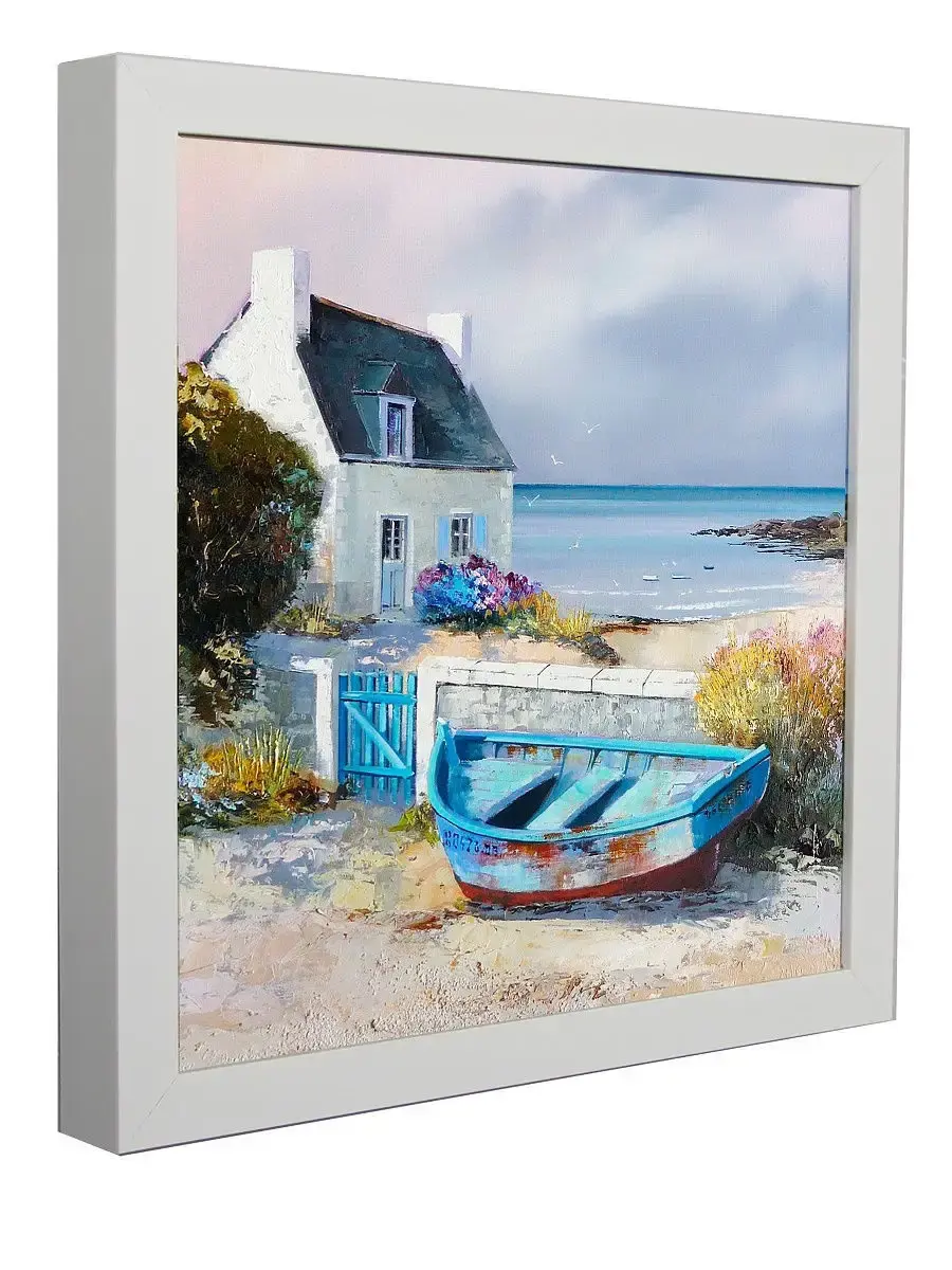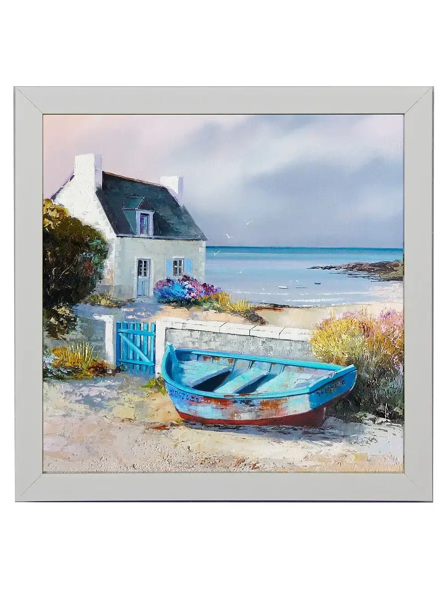 Картина напечатана на натуральном холсте, покрыта лаком. Для защиты от провисания холст наклеен на хдф. Рама высокая (2 см) из полиуретана матовая.