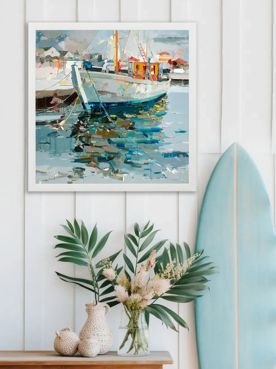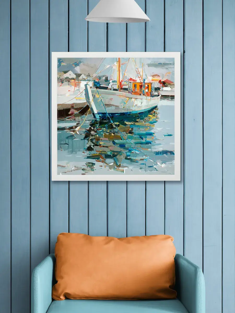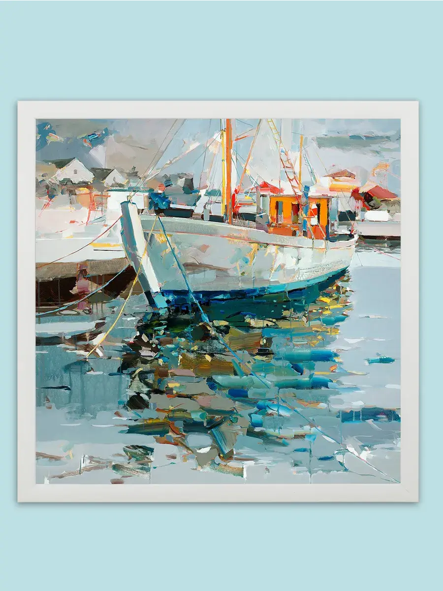 Картина настенная "Лодки в море" от Elenadecor станет настоящим украшением вашего дома, наполняя его атмосферой морского спокойствия и безмятежности. Эта интерьерная картина на холсте, выполненная в морском стиле, перенесет вас на берег лазурного моря, где уютные лодки покачиваются на волнах. Изображение создает эффект глубины и реалистичности, делая картину настоящим произведением искусства. Картина "Лодки в море" станет прекрасным дополнением к любому интерьеру, будь то дом, квартира или дача, а ее морская тематика идеально впишется в средиземноморский стиль. Изготовленная на натуральном холсте, картина отличается высоким качеством и долговечностью, а лаконичная белая рама из полиуретана придает картине законченный вид. Она уместна как в современном, так и в классическом интерьере.