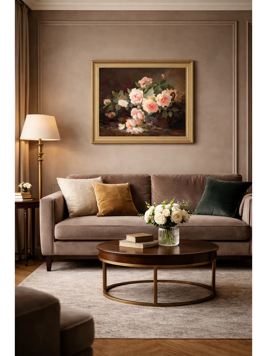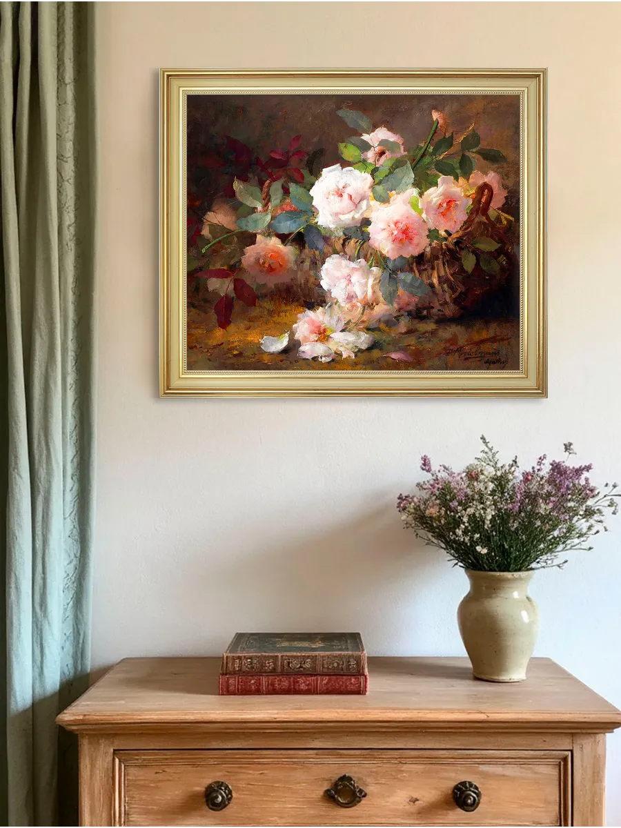 Интерьерная картина с цветочной композицией добавит дому уют, глубину и атмосферу классического декора. Подходит для гостиной, спальни, кухни, прихожей и кабинета.