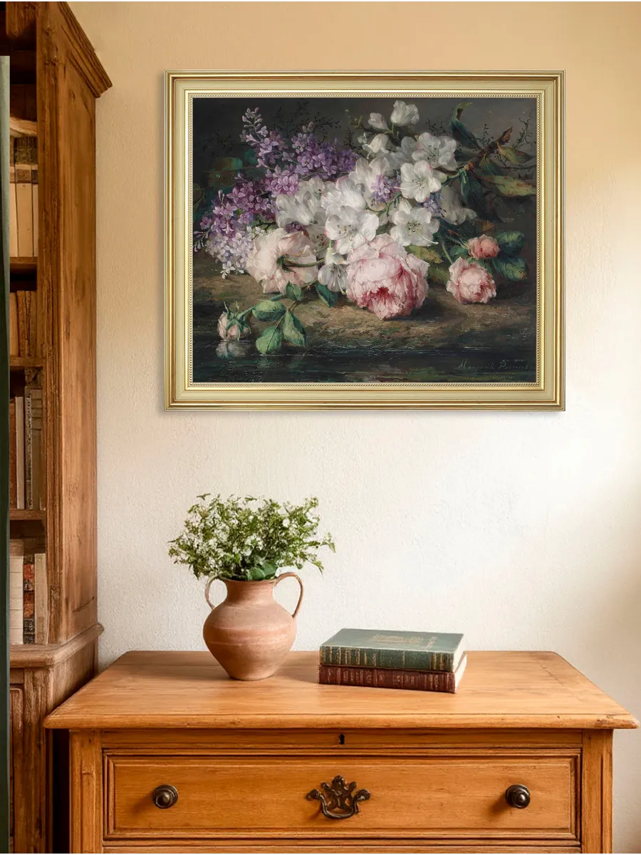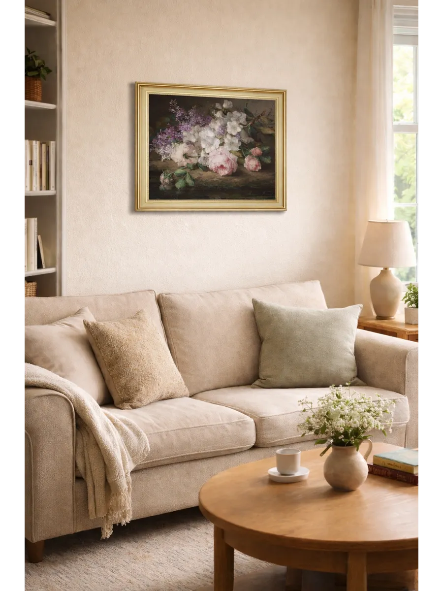 Интерьерная картина с цветочной композицией добавит дому уют, глубину и атмосферу классического декора. Подходит для гостиной, спальни, кухни, прихожей и кабинета.