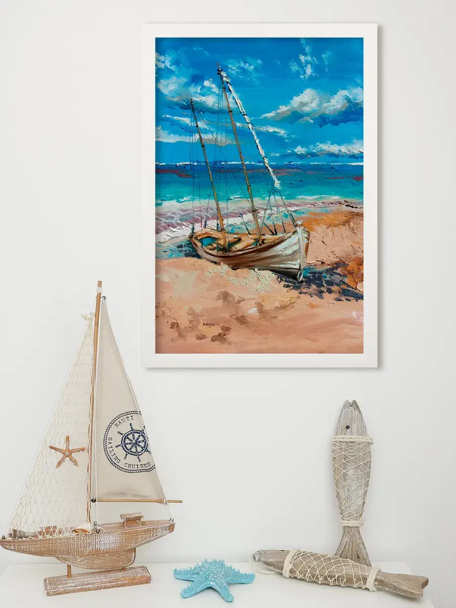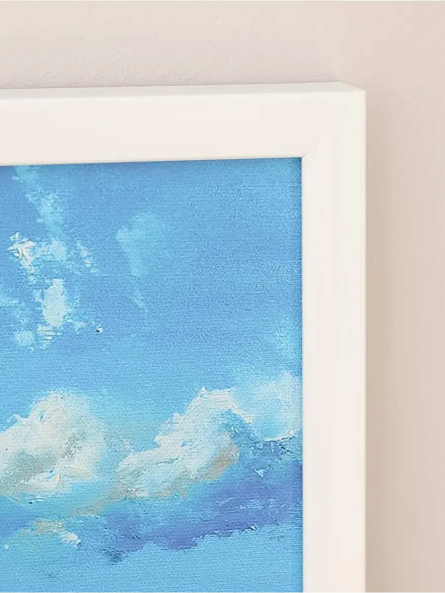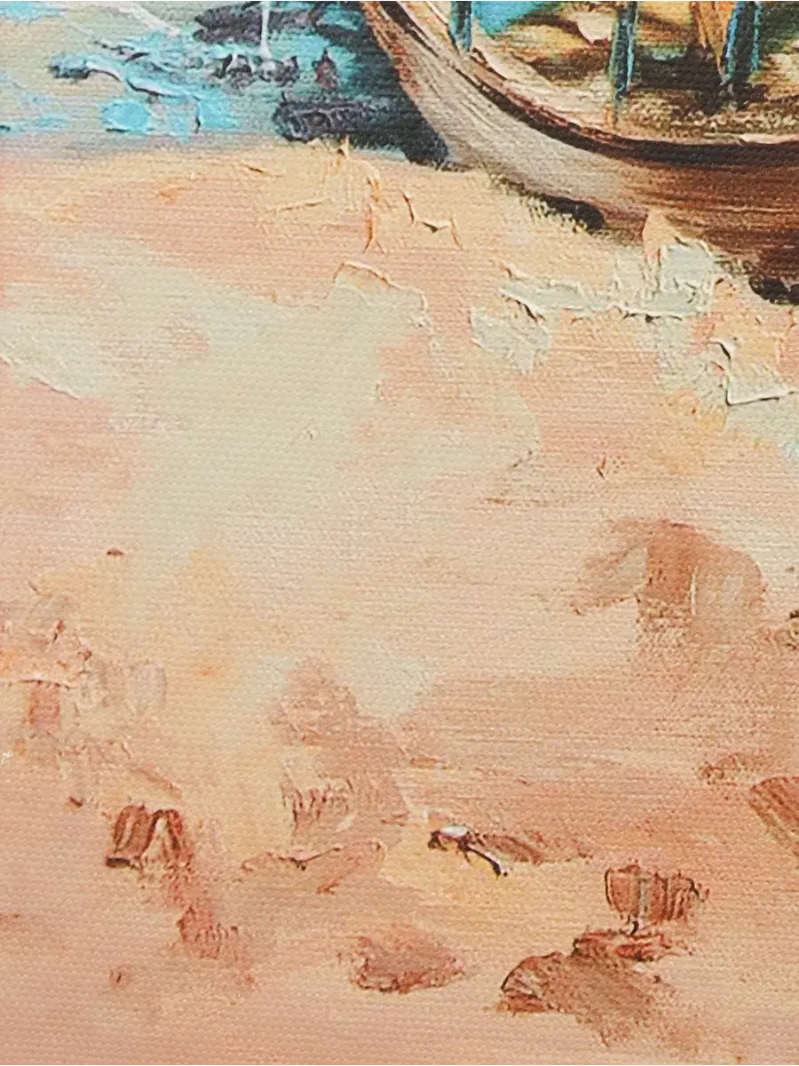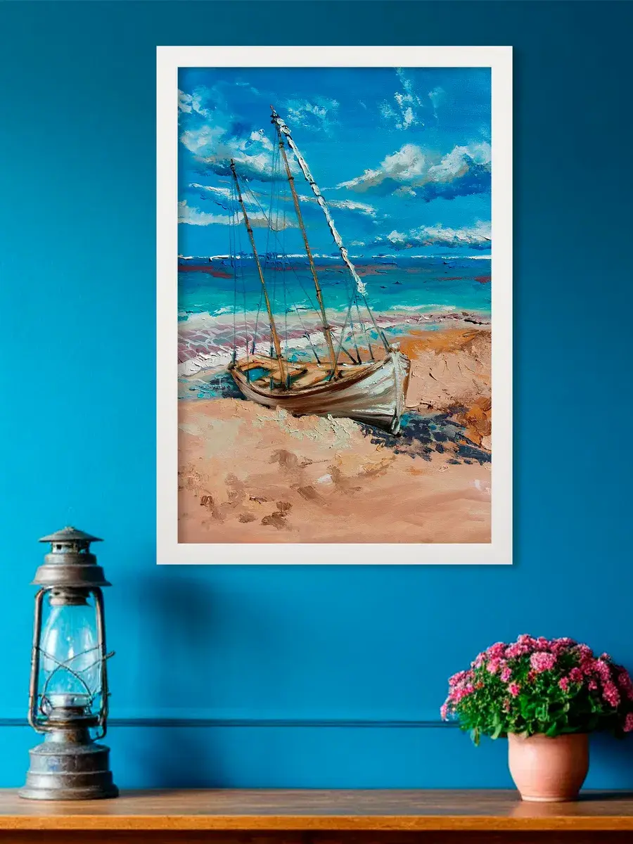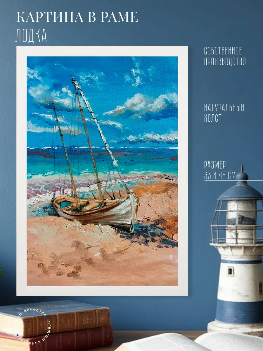 Картина напечатана на натуральном холсте, покрыта матовым лаком. Основа из ХДФ, что исключает провисание холста. Багетная рама из полиуретана матовая белая, с круглым профилем. Крепление для стены в комплекте.
