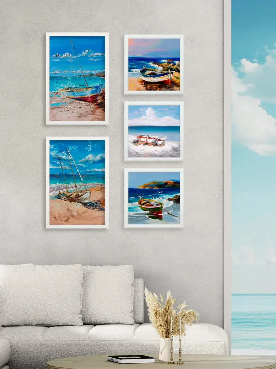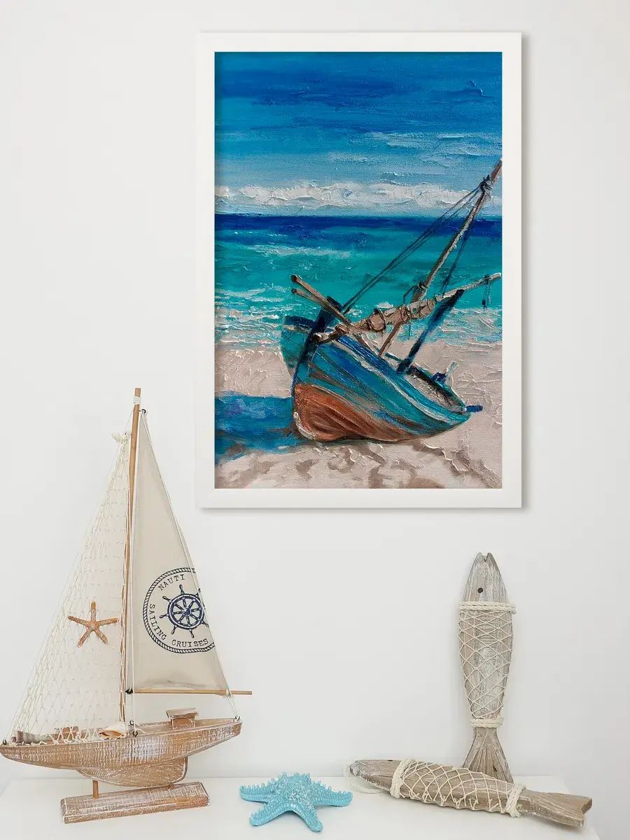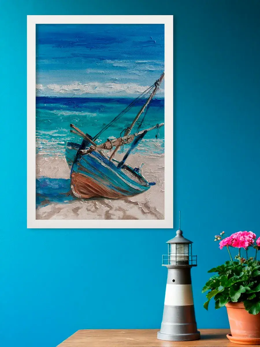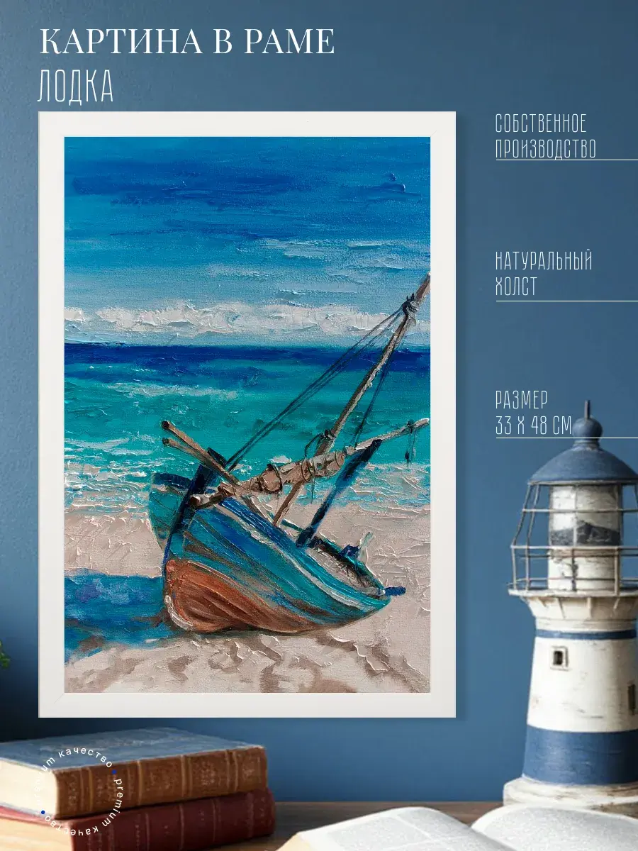 Картина напечатана на натуральном холсте, покрыта матовым лаком. Основа из ХДФ, что исключает провисание холста. Багетная рама из полиуретана матовая белая, с круглым профилем. Крепление для стены в комплекте.