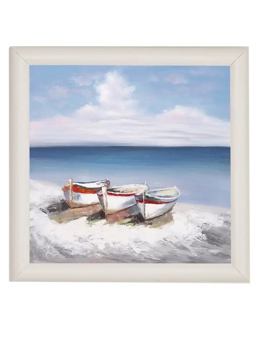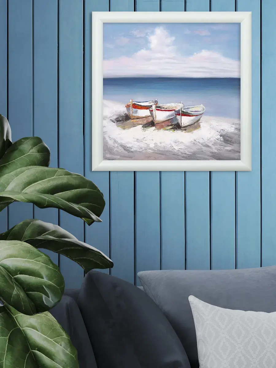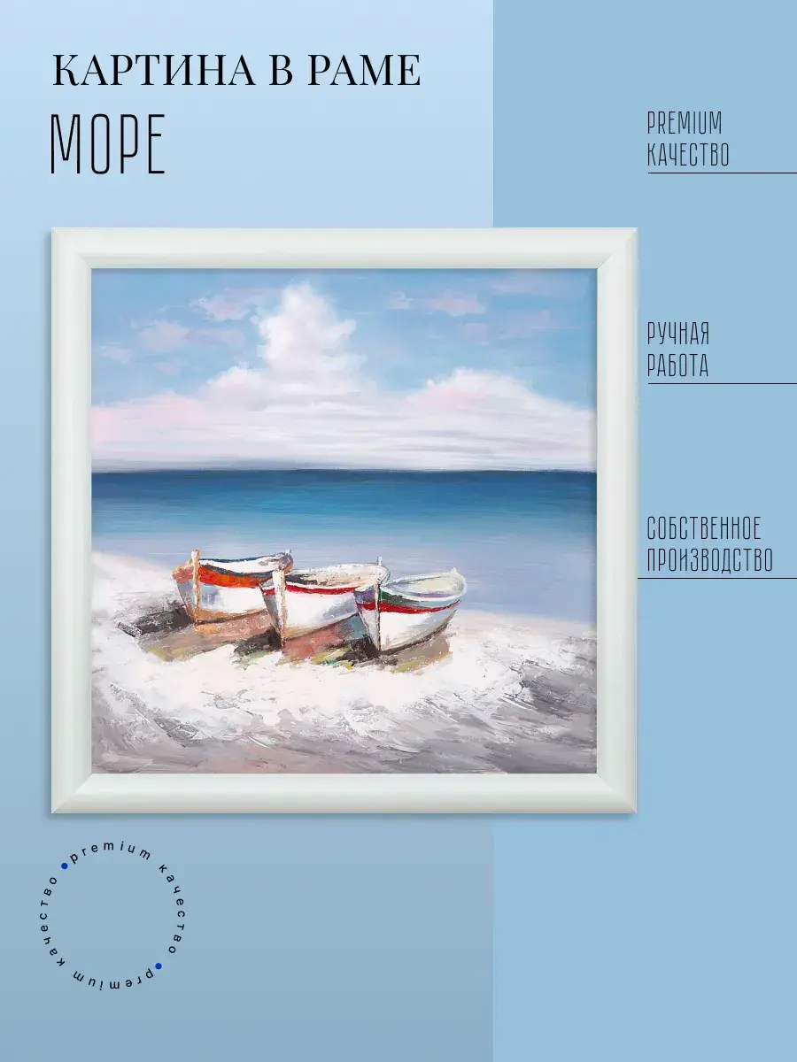 Картина напечатана на натуральном холсте, покрыта матовым лаком. Основа из ХДФ, что исключает провисание холста. Багетная рама из полиуретана матовая белая, с круглым профилем. Крепление для стены в комплекте.