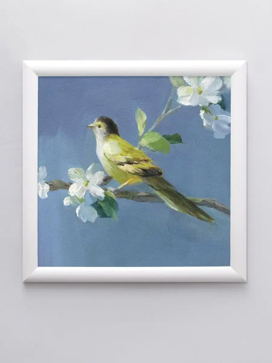 Картина напечатана на натуральном холсте, покрыта матовым лаком. Основа из ХДФ, что исключает провисание холста. Багетная рама из полиуретана матовая белая, с круглым профилем. Крепление для стены в комплекте.