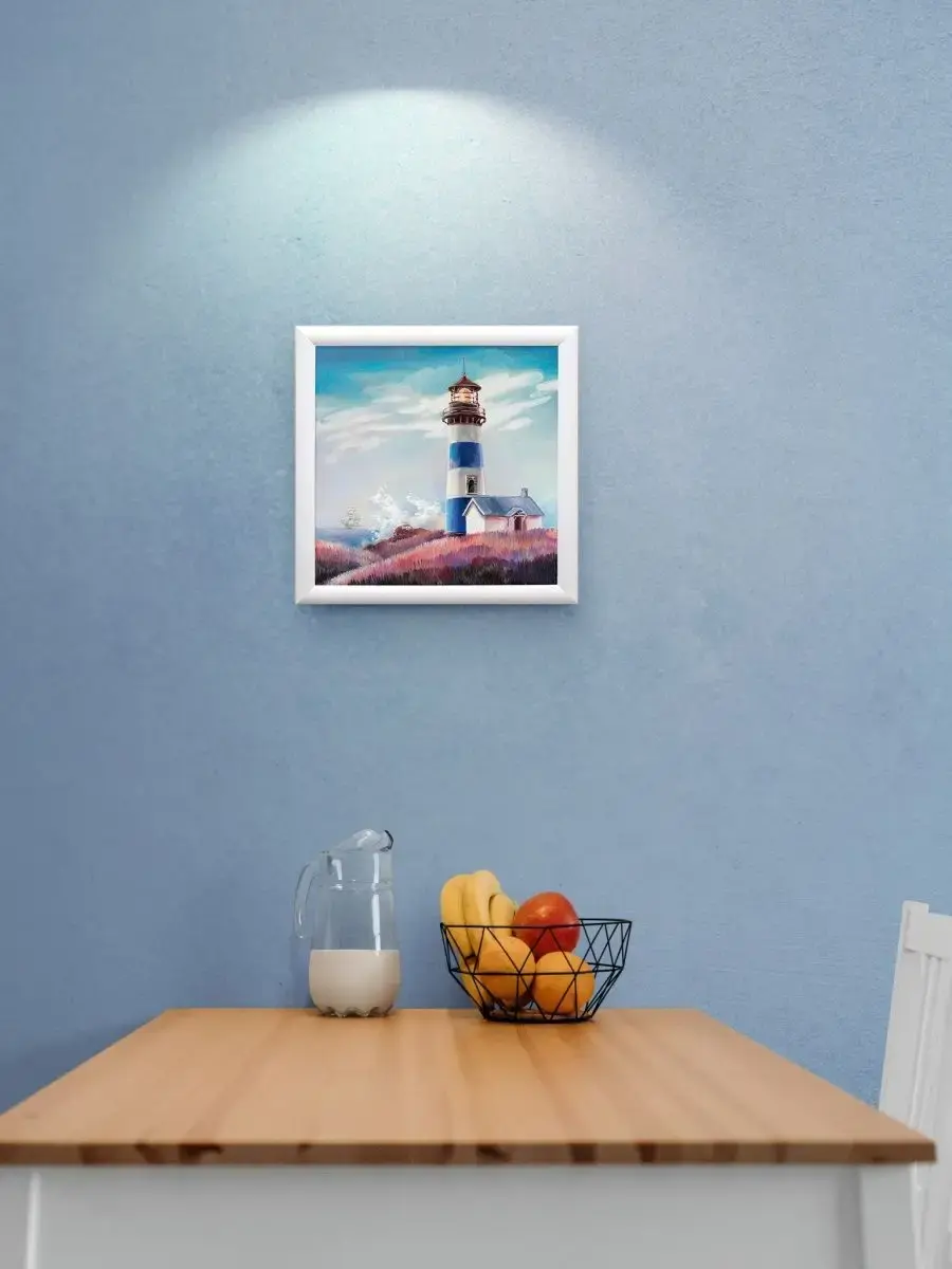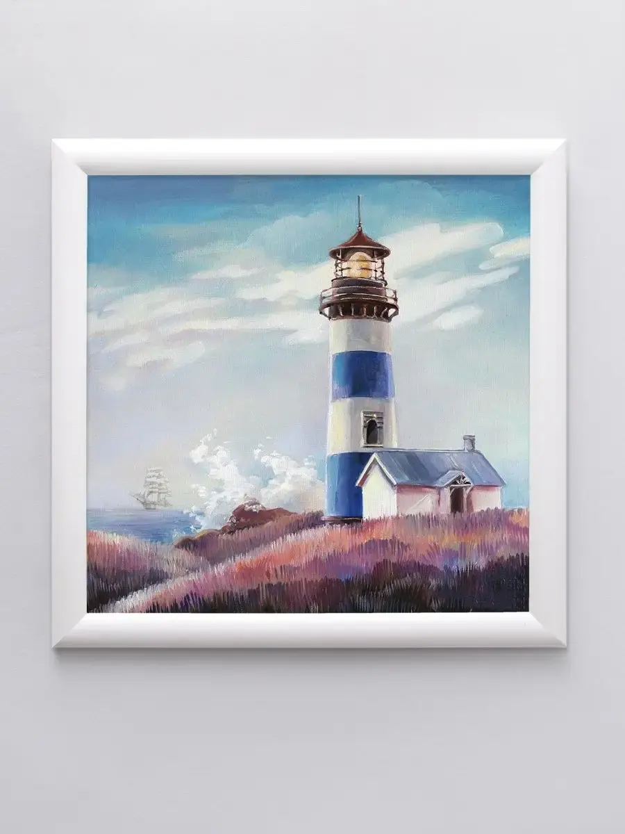 Картина напечатана на натуральном холсте, покрыта матовым лаком. Основа из ХДФ, что исключает провисание холста. Багетная рама из полиуретана матовая белая, с круглым профилем. Крепление для стены в комплекте.