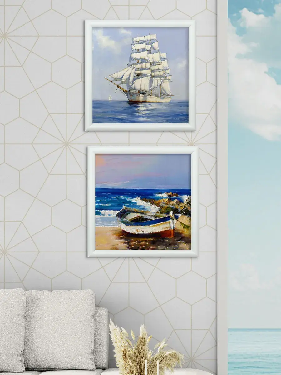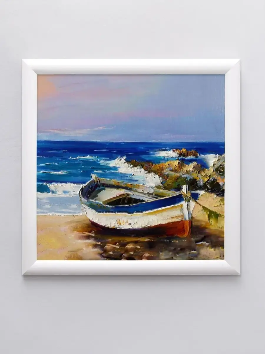 Картина напечатана на натуральном холсте, покрыта матовым лаком. Основа из ХДФ, что исключает провисание холста. Багетная рама из полиуретана матовая белая, с круглым профилем. Крепление для стены в комплекте.