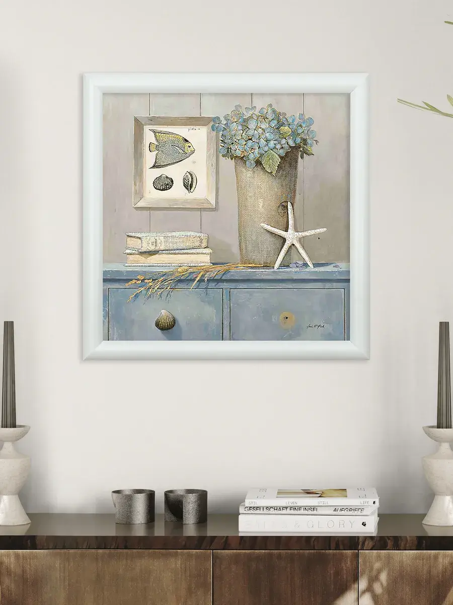Картина напечатана на натуральном холсте, покрыта матовым лаком. Основа из ХДФ, что исключает провисание холста. Багетная рама из полиуретана матовая белая, с круглым профилем. Крепление для стены в комплекте.