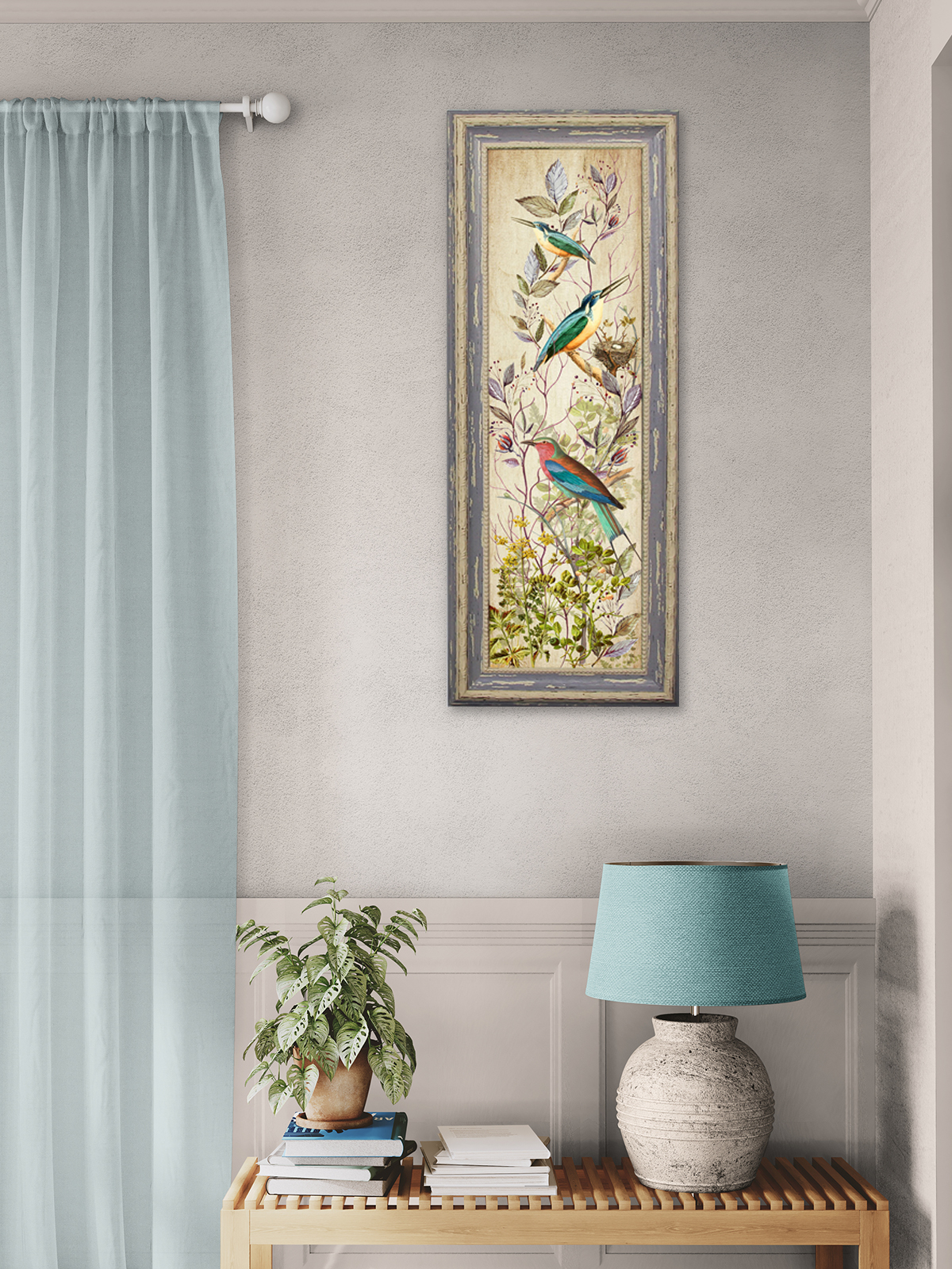 Картина напечатана на натуральном холсте, наклеена на хдф для защиты от провисания, покрыта акриловым лаком. Рама матовая из полиуретана с эффектом состаренного дерева. Размер холста без рамы 16*51см, размер картины в раме 22.5х57.5 см