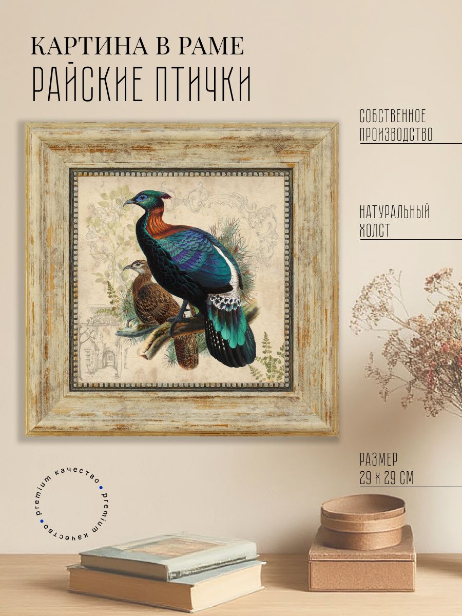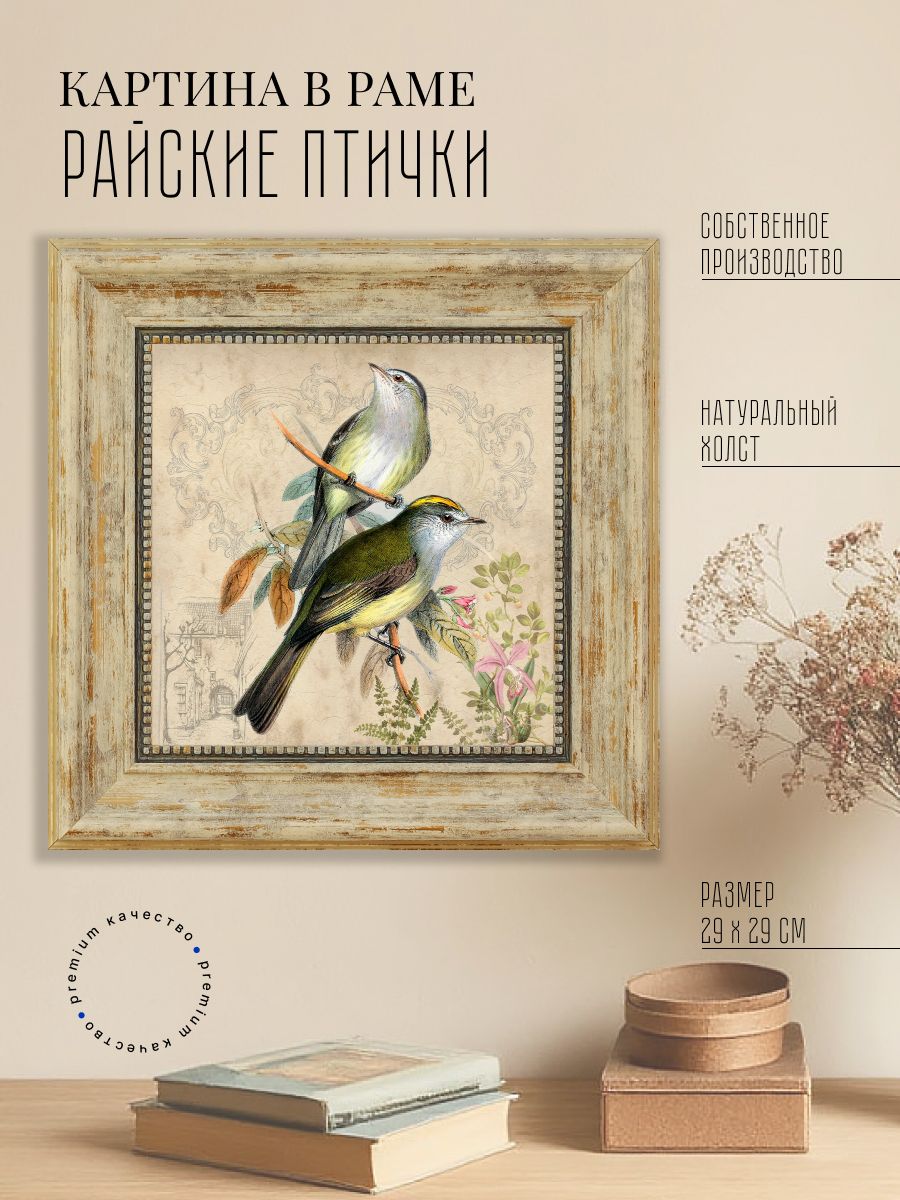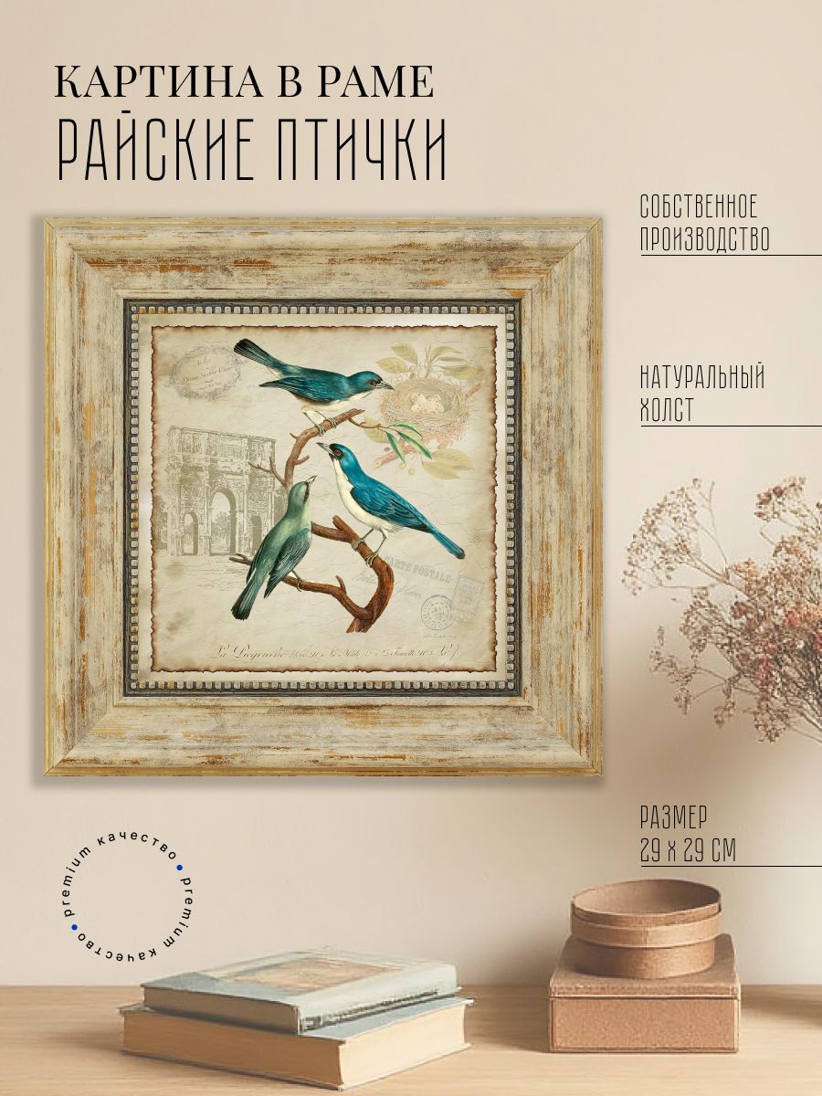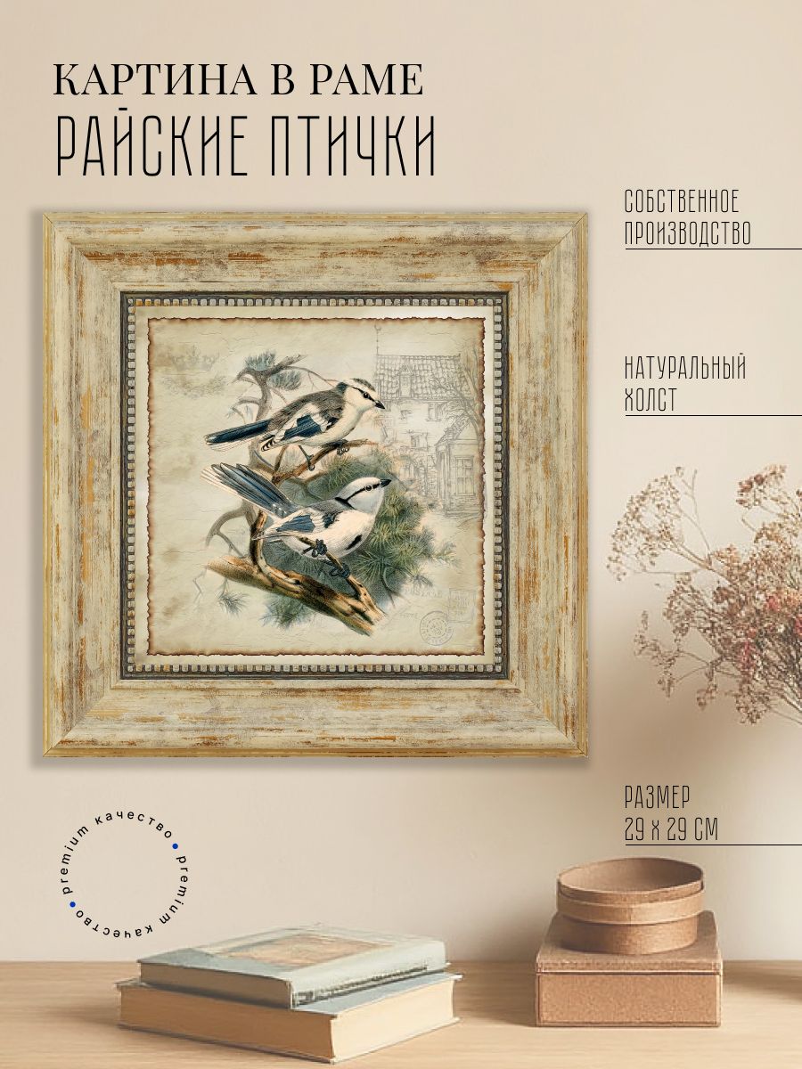 Укрась свой дом уникальными картинами "Птички" на натуральном холсте размером 29*29 см, холст 20*20см. Картины созданы дизайнерами Elensdecor с использованием иллюстраций художников 19 века. Настенный декор для коллекции в широкой винтажной раме создаст уют и дополнит интерьер вашего дома, гостиной, спальни, кухни, детской комнаты, прихожей. Картина напечатана на качественном холсте, защищена лаком для долговечности. Картина "Птички" станет отличным подарком для ценителей декора и символизирует красоту природы. Добавьте эту картину в свою коллекцию и создайте уникальный уголок в вашем доме, наполненный уютом и теплом. Порадуйте себя или своих близких этим прекрасным художественным произведением! Крепление для стены в комплекте.