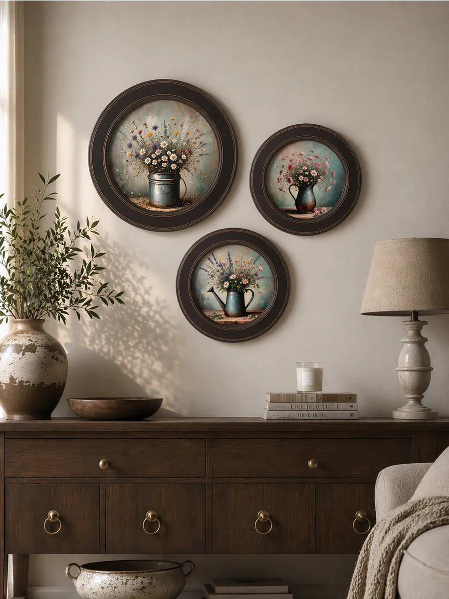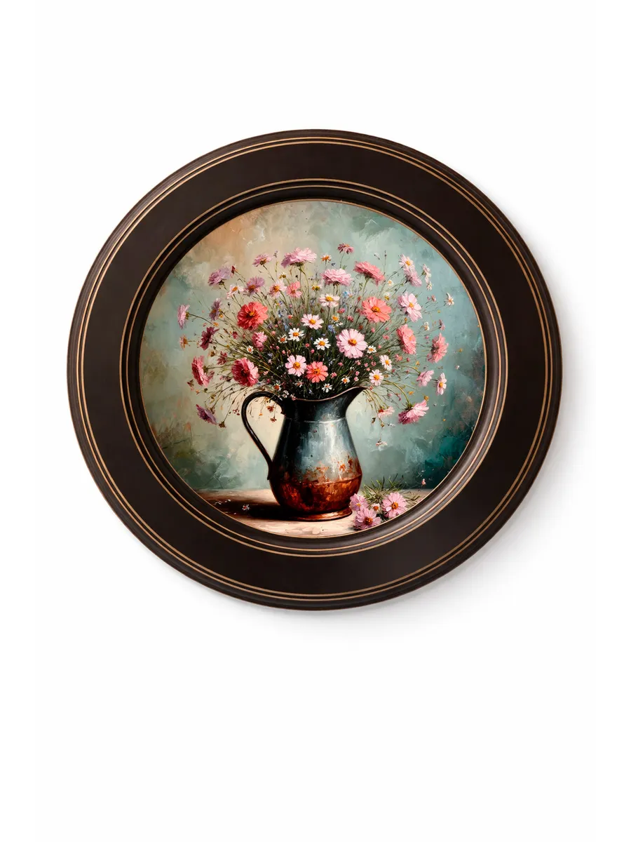 Стильная картина на холсте в круглой раме — эффектный акцент для интерьера, который мгновенно создаёт атмосферу уюта и эстетики.