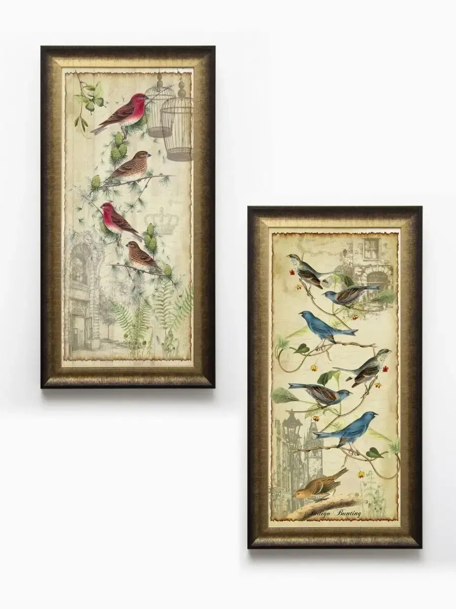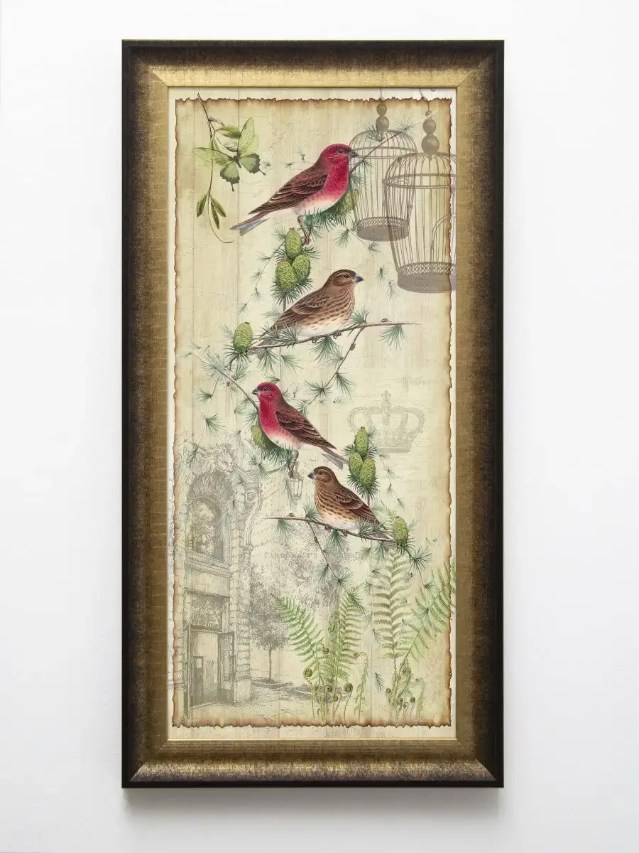 Настенные панно с птичками станут поистине прекрасным украшением интерьера, подходят для создания коллекций. Размер каждой картины 44,5*23 см. Зубчатый крепеж на картине и крепление для стены в комплекте.