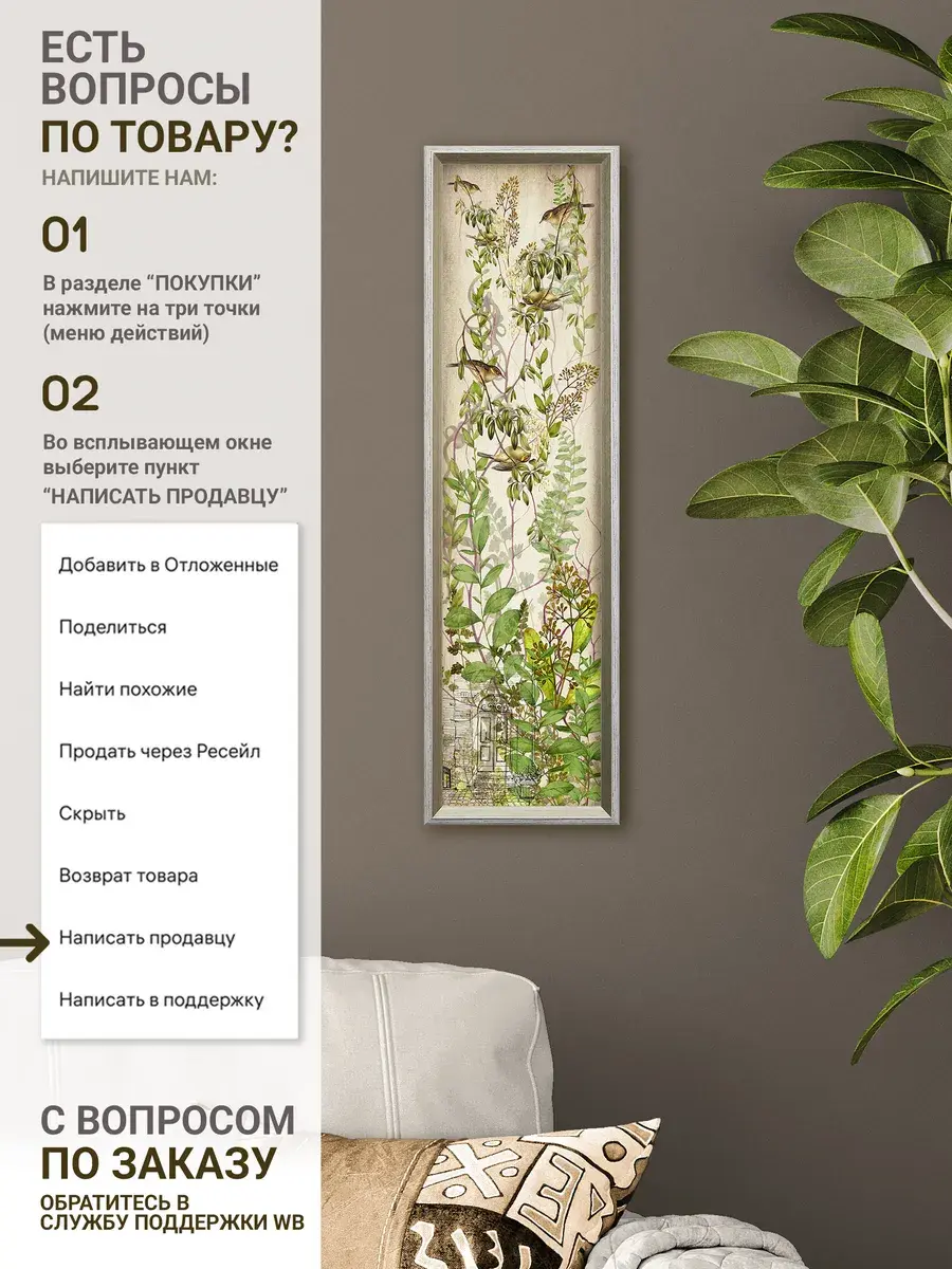 Можно собрать набор из 3х или 4х картин для декора стен в гостиной. Подберите цвет рам которые подходят именно для вашего дома - коричневые или белые.