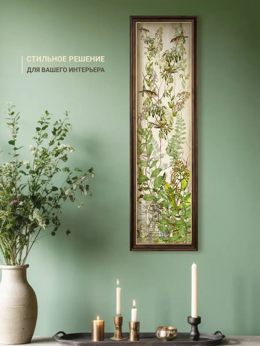 Вертикальная картина для кухни или прихожей зрительно увеличивает высоту потолков. Печать в высоком разрешении, сочные, насыщенные цвета, подобранные по оттенку нашими дизайнерами в стильную гармоничную композицию. Интерьерные картины это уютное украшение вашего дома, дачи или салона красоты. Картины не выгорают и не боятся влажной уборки, оформлены в коричневой раме с золотом из полиуретана.