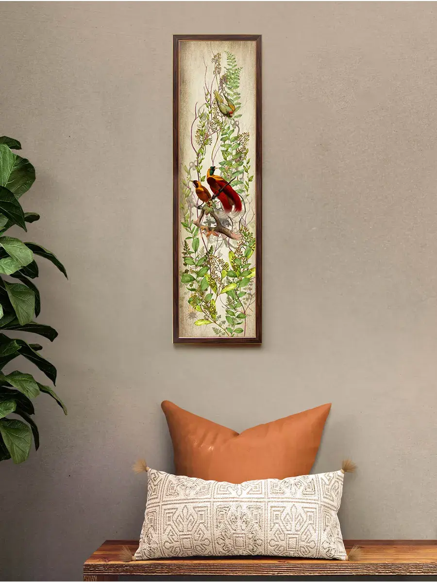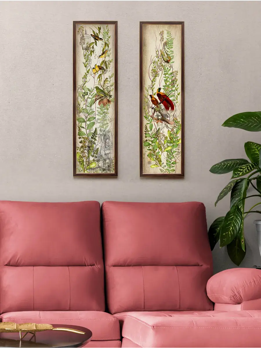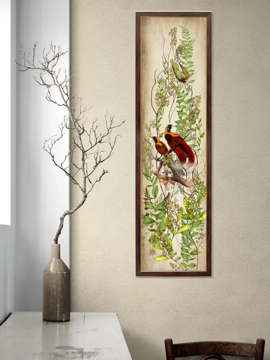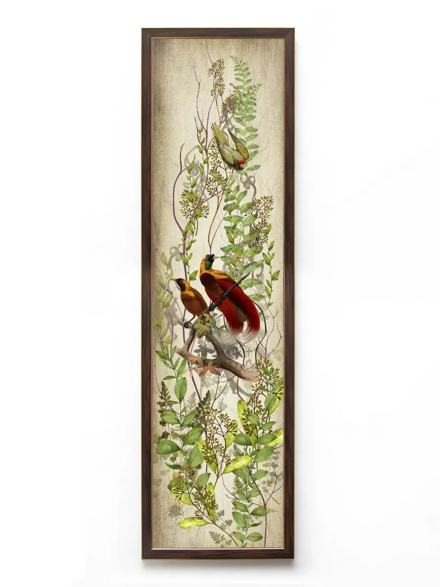 Картина "Птички на ветках" напечатана на бумаге, покрыта ламинацией для защиты изображения. Картина готовая в раме размером 21х73 см. Декор для дома с птицами замечательный символичный подарок друзьям и знакомым. Разнообразие сюжетов позволяет собрать домашнюю коллекцию и дополнить интерьер яркими акцентами.