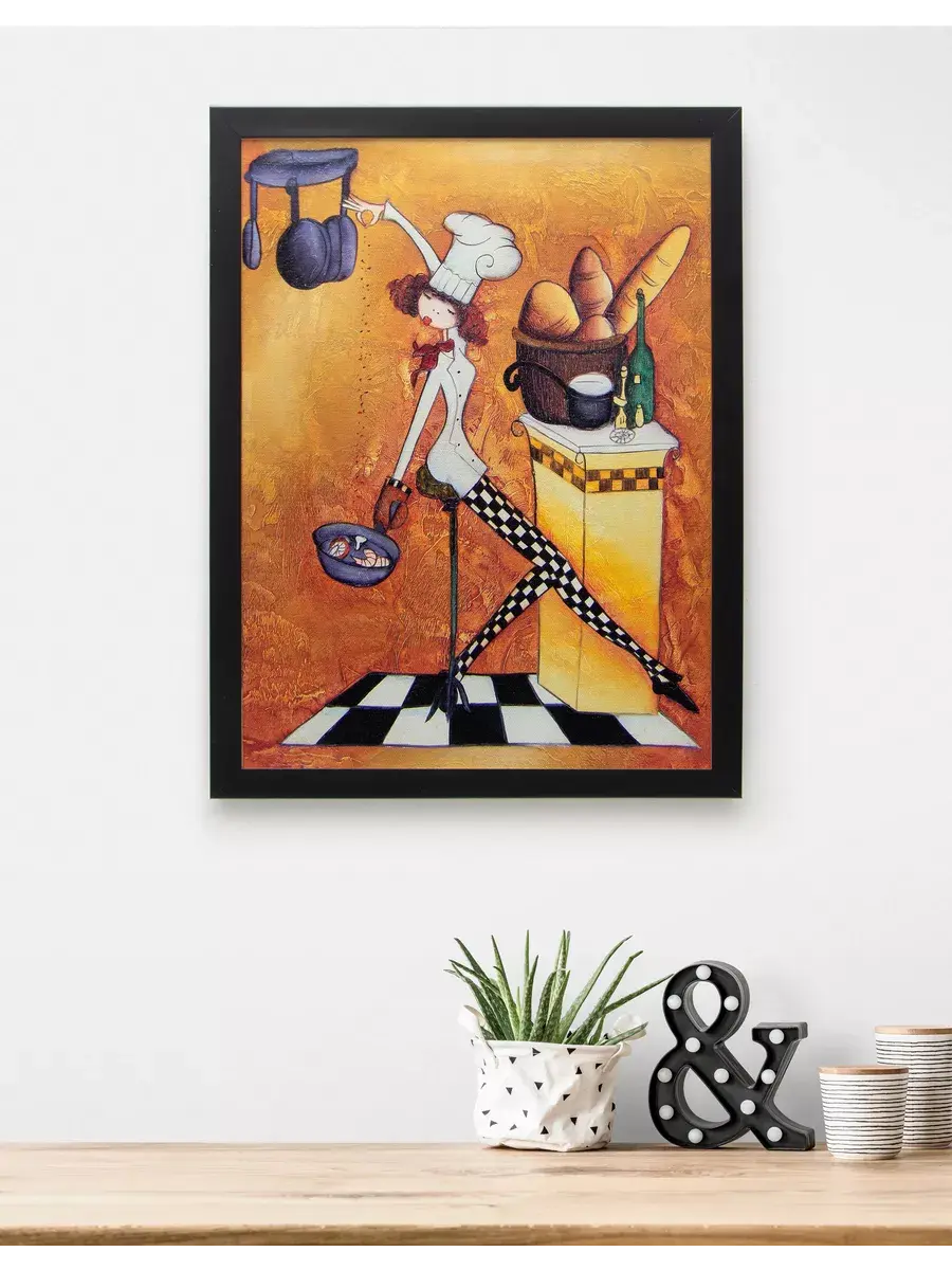Картина напечатана на натуральном холсте, покрыта матовым лаком станет прекрасным дополнением и украшением интерьера. Картина украсит и дополнит интерьер кухни, столовой, кафе. Милый сувенир или просто подарок без повода. Рама изготовлена из полиуретана. Размер картины 33*43 см размер изображения 29*39 см. Крепление для стены в комплекте.
