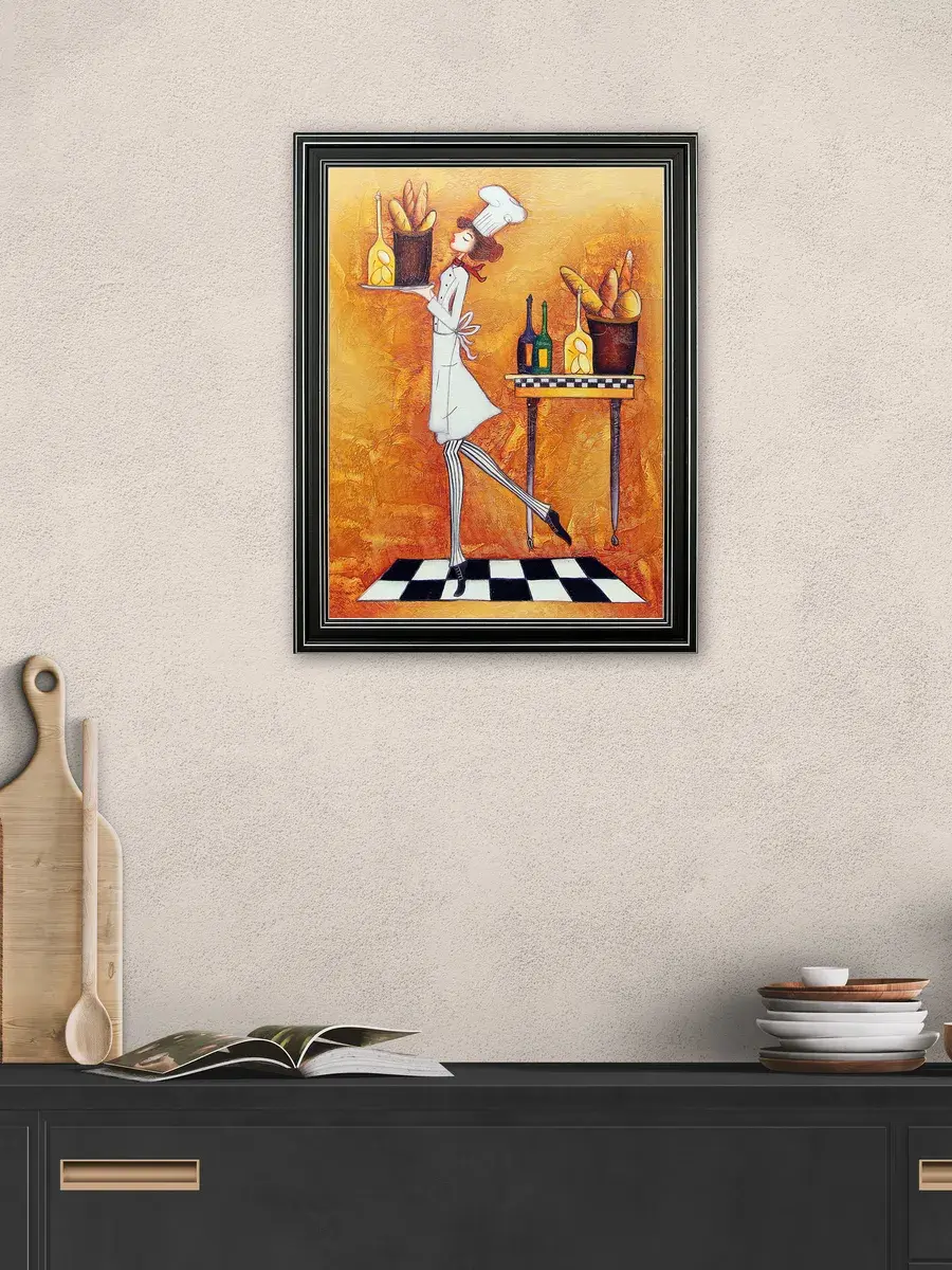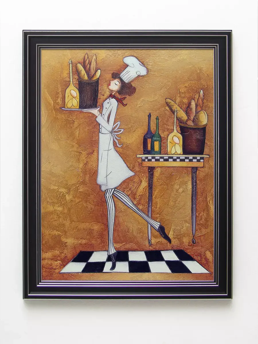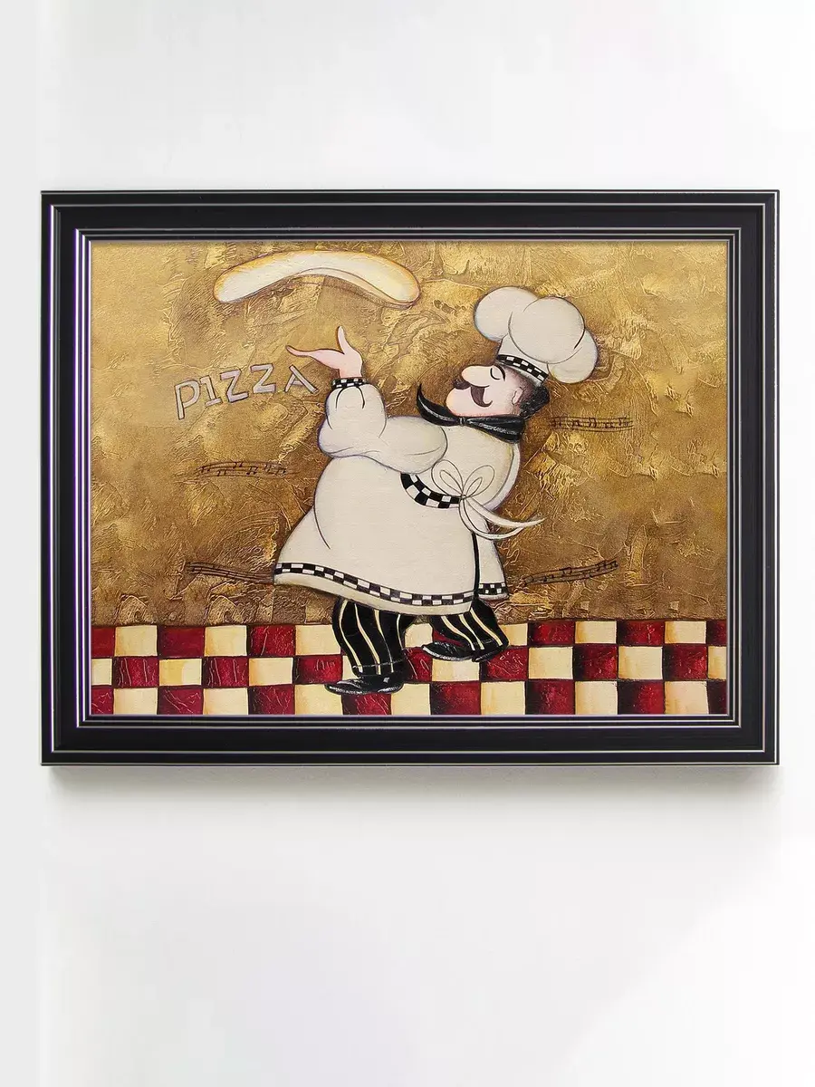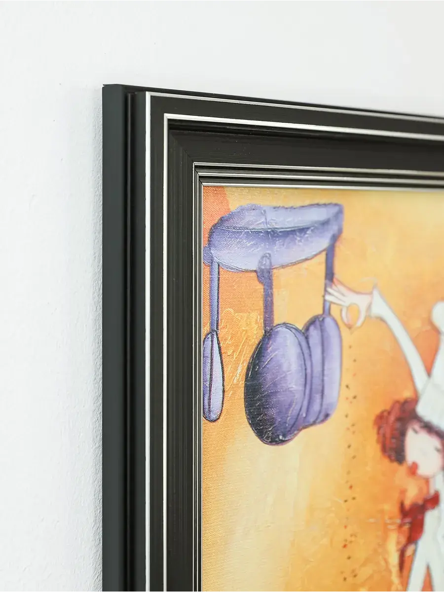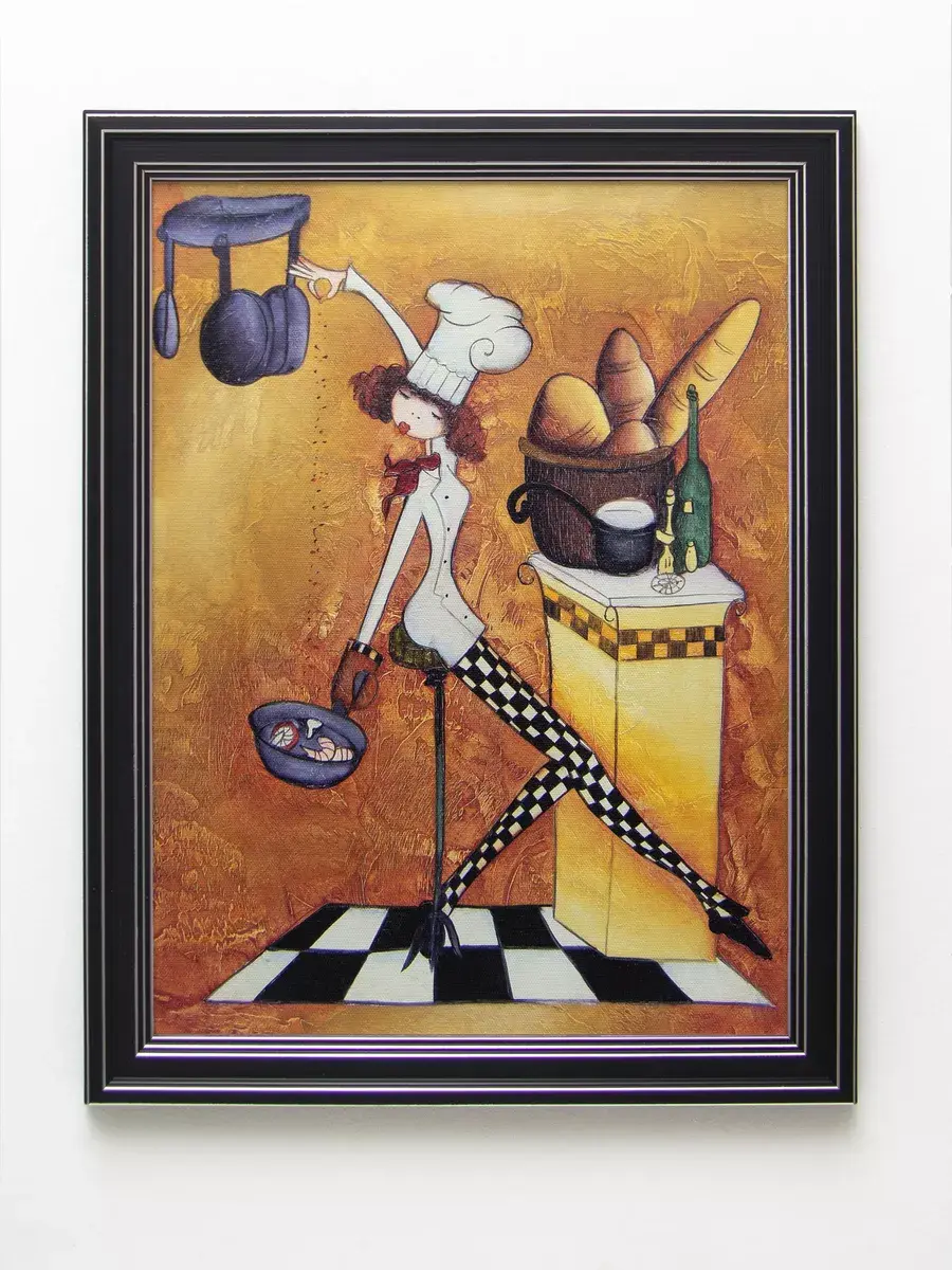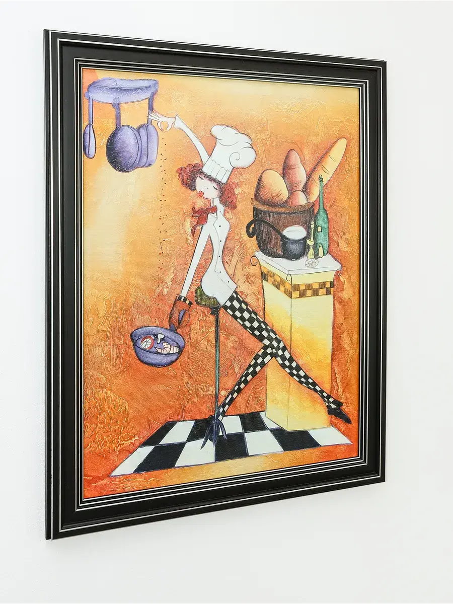 Настенный декор - картина с винтажными поварами в лаконичной черной раме с серебряным орнаментом. Картина напечатана на натуральном холсте, покрыта матовым лаком станет прекрасным дополнением и украшением интерьера. Картина украсит и дополнит интерьер кухни, столовой, кафе. Милый сувенир или просто подарок без повода. Рама изготовлена из полиуретана. Размер картины 35*45 см размер изображения 29*39 см. Крепление для стены в комплекте.