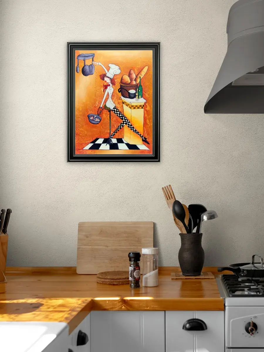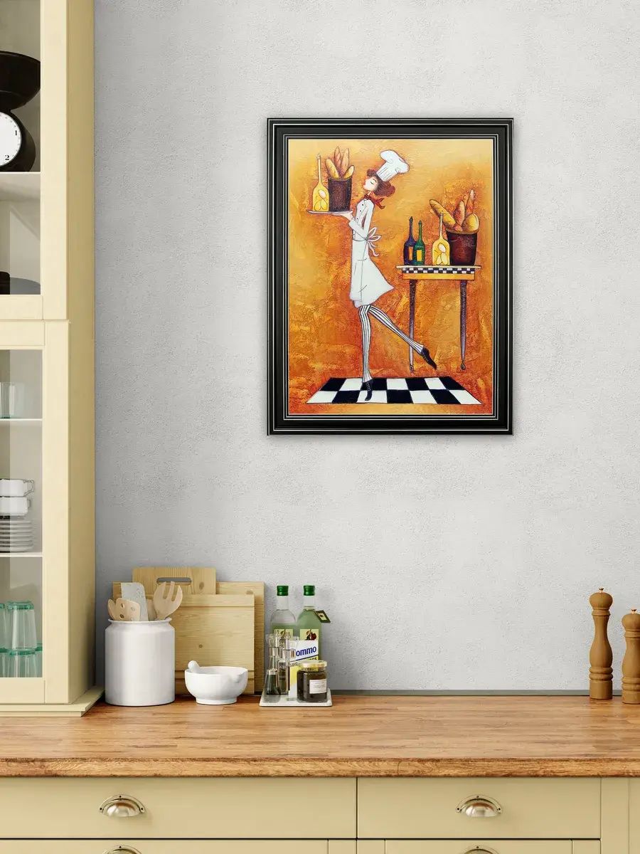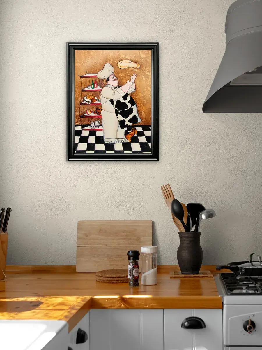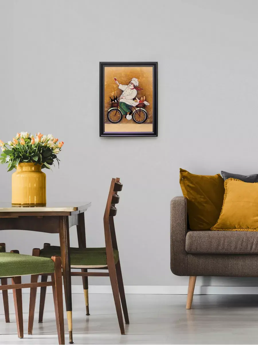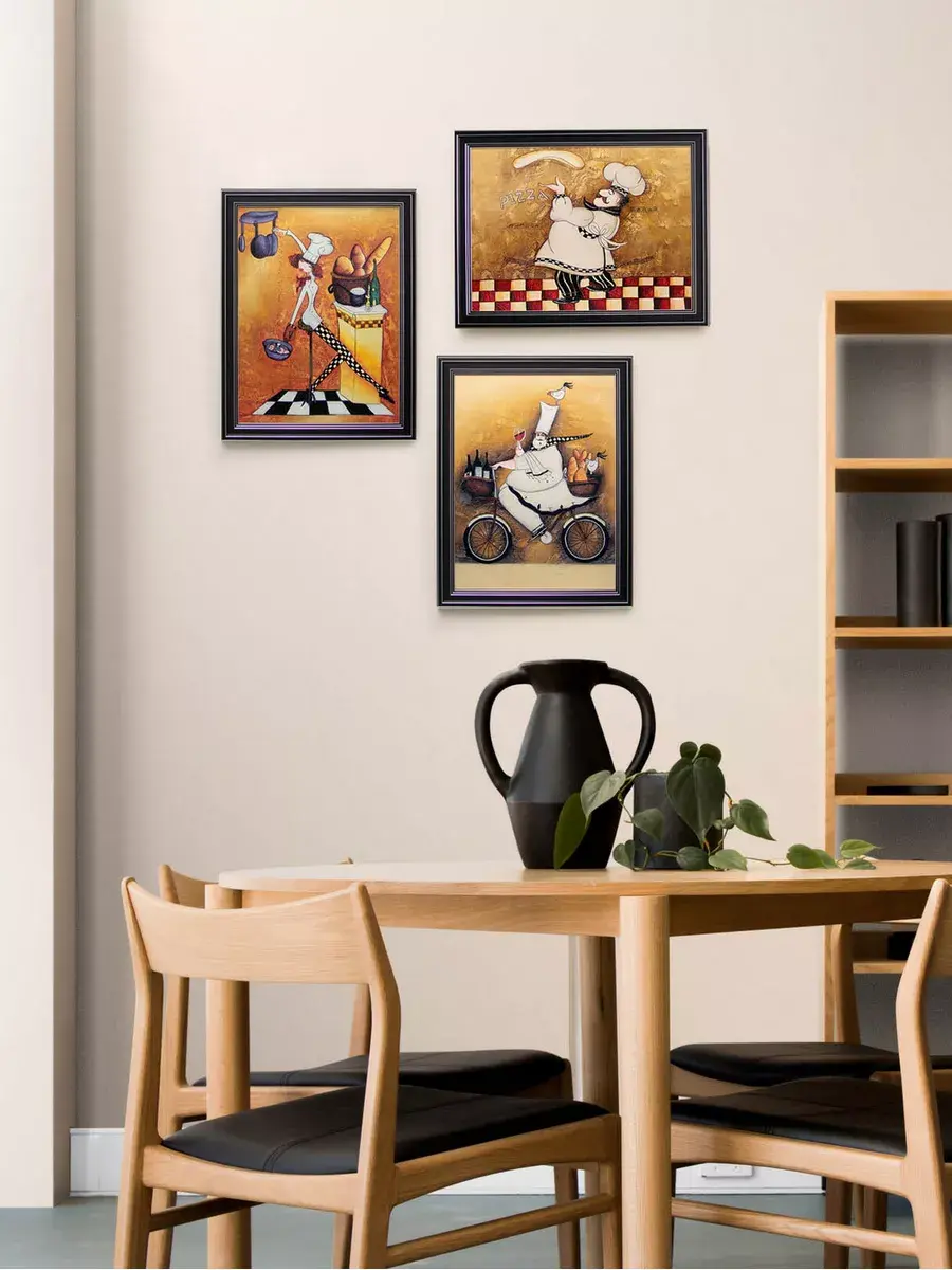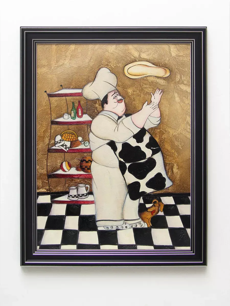 Настенный декор - картина с винтажными поварами в лаконичной черной раме с серебряным орнаментом. Картина напечатана на натуральном холсте, покрыта матовым лаком станет прекрасным дополнением и украшением интерьера. Картина украсит и дополнит интерьер кухни, столовой, кафе. Милый сувенир или просто подарок без повода. Рама изготовлена из полиуретана. Размер картины 35*45 см размер изображения 29*39 см. Крепление для стены в комплекте.