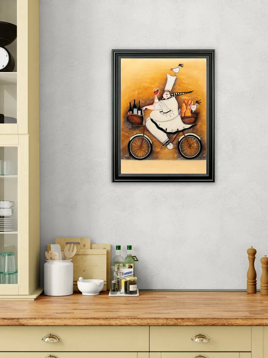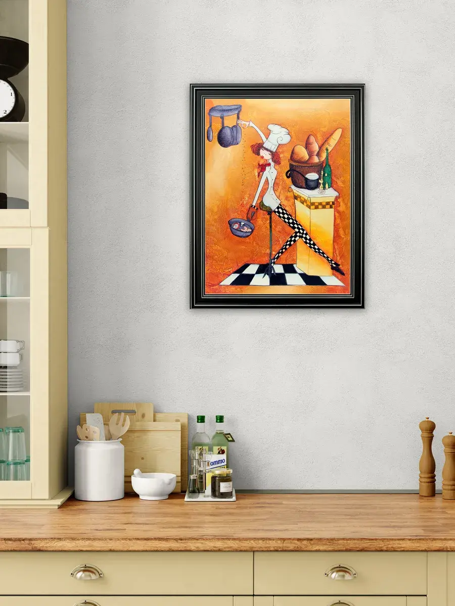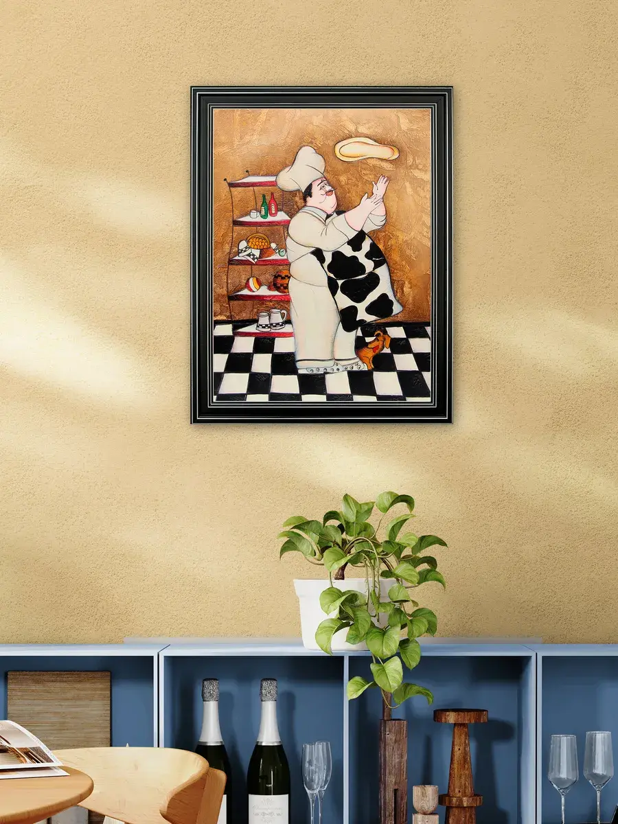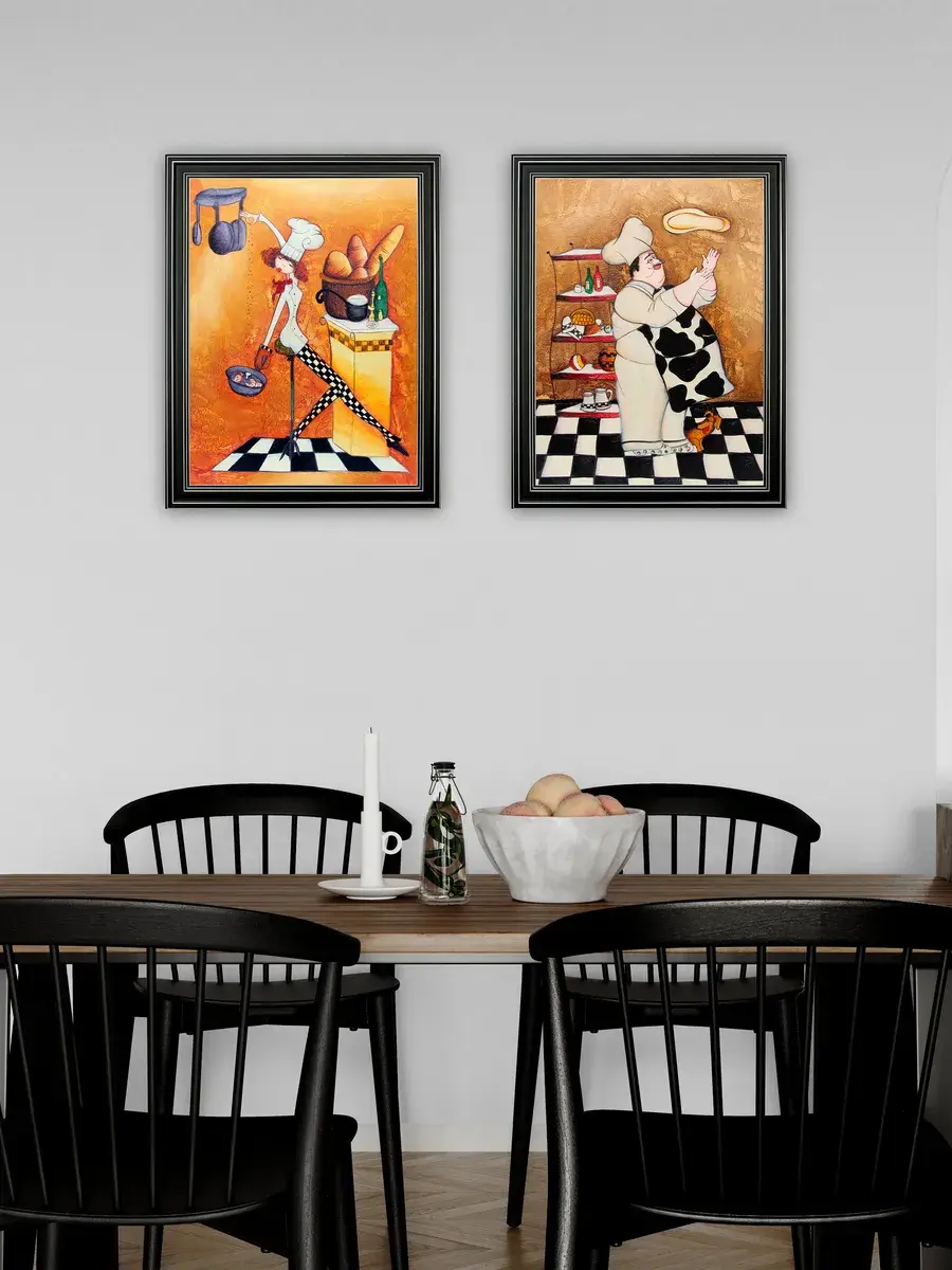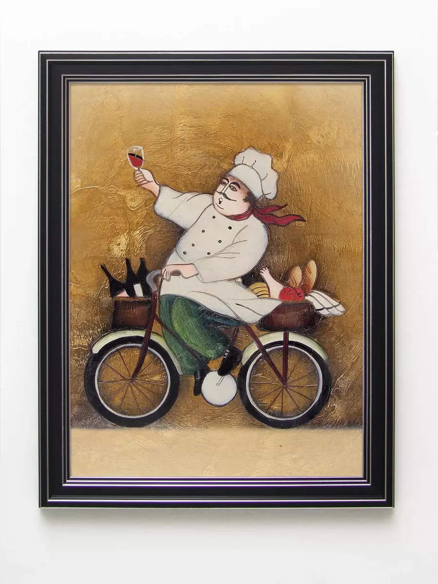 Настенный декор - картина с винтажными поварами в лаконичной черной раме с серебряным орнаментом. Картина напечатана на натуральном холсте, покрыта матовым лаком станет прекрасным дополнением и украшением интерьера. Картина украсит и дополнит интерьер кухни, столовой, кафе. Милый сувенир или просто подарок без повода. Рама изготовлена из полиуретана. Размер картины 35*45 см размер изображения 29*39 см. Крепление для стены в комплекте.