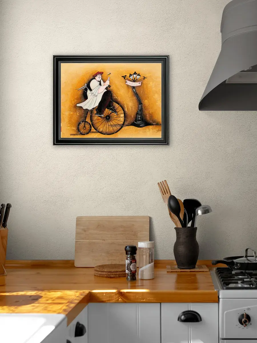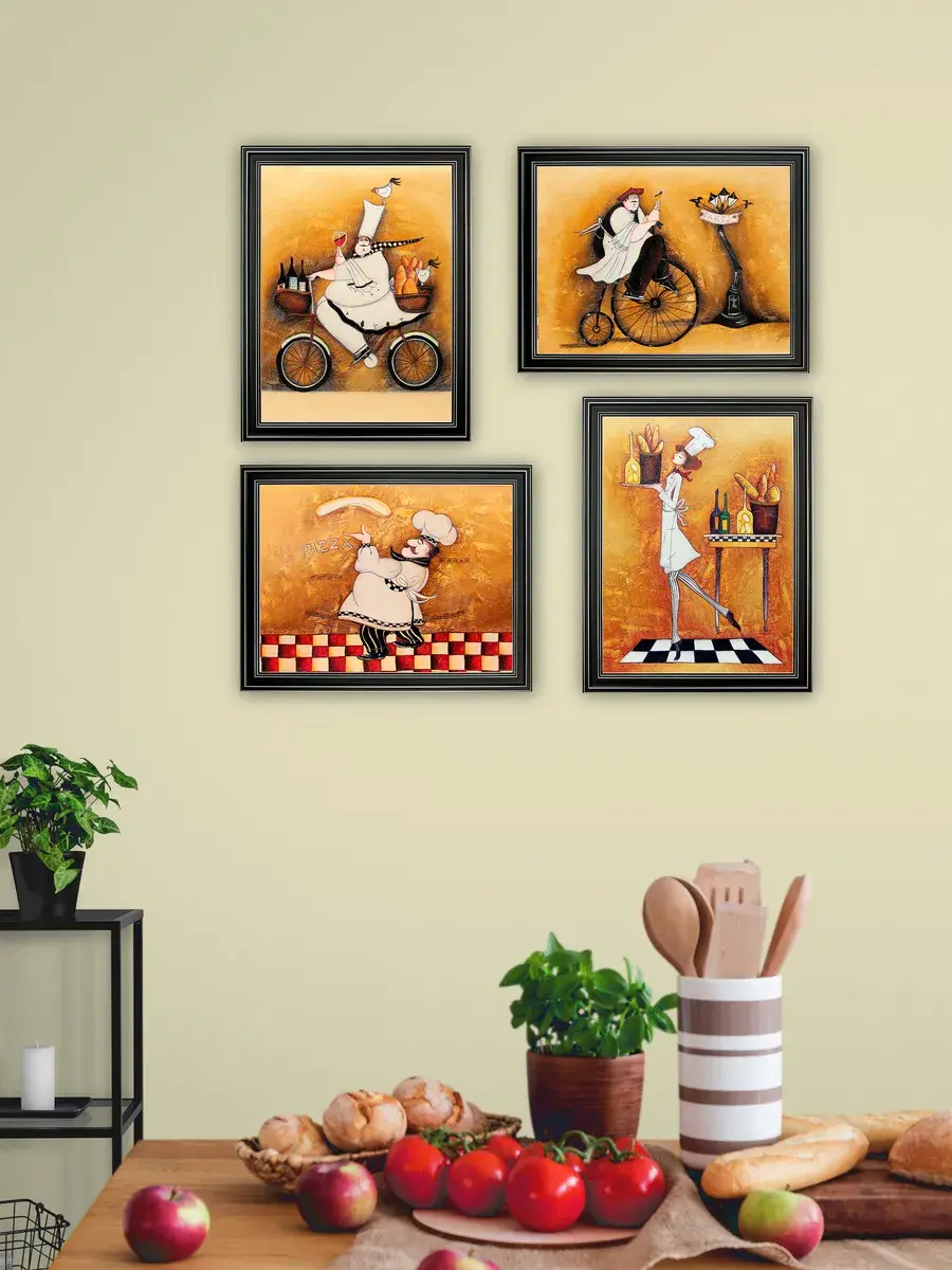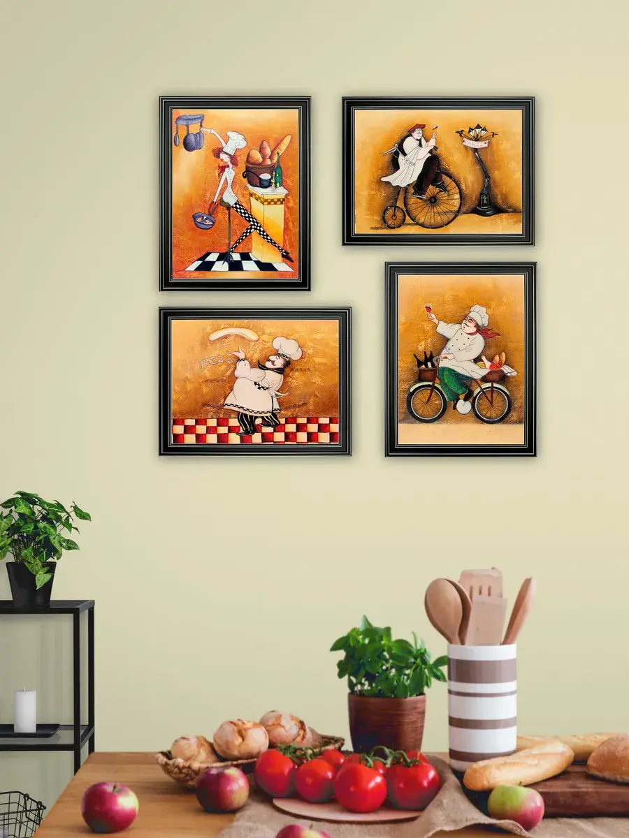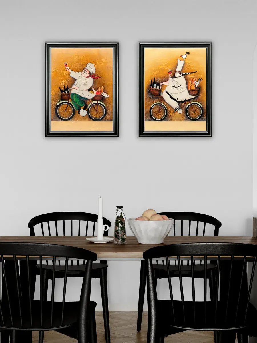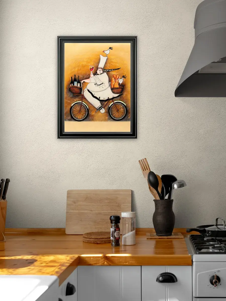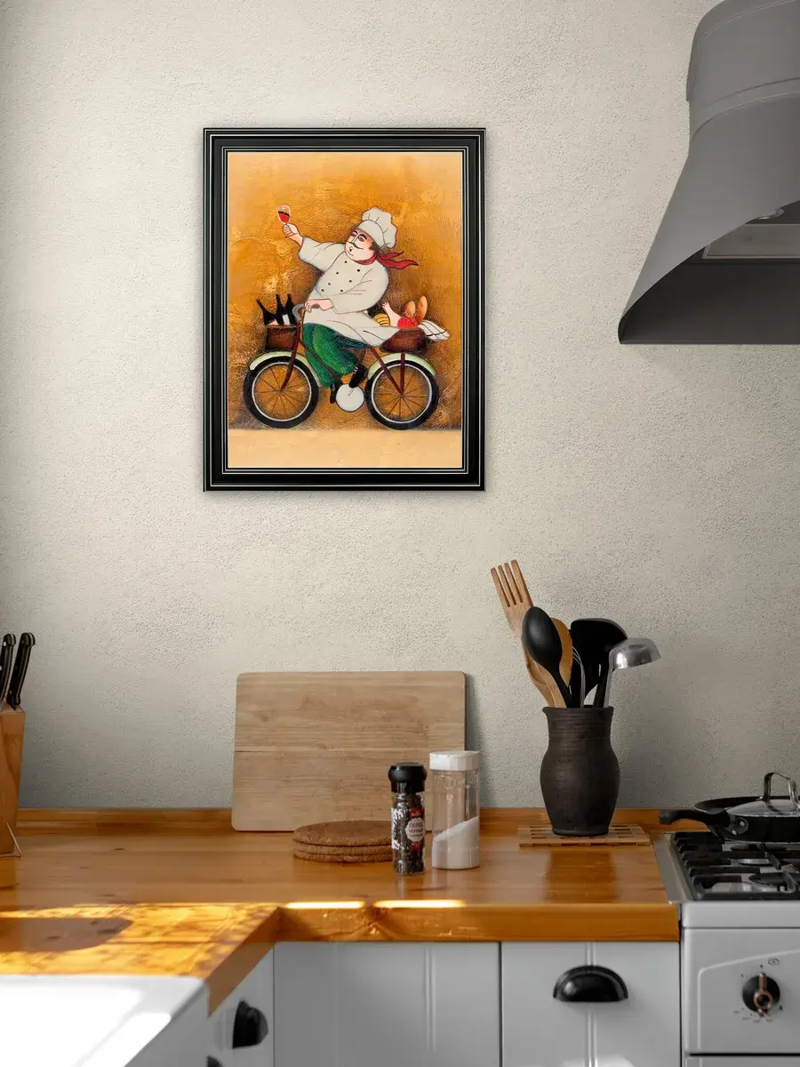 Настенный декор - картина с винтажными поварами в лаконичной черной раме с серебряным орнаментом. Картина напечатана на натуральном холсте, покрыта матовым лаком станет прекрасным дополнением и украшением интерьера. Картина украсит и дополнит интерьер кухни, столовой, кафе. Милый сувенир или просто подарок без повода. Рама изготовлена из полиуретана. Размер картины 35*45 см размер изображения 29*39 см. Крепление для стены в комплекте.