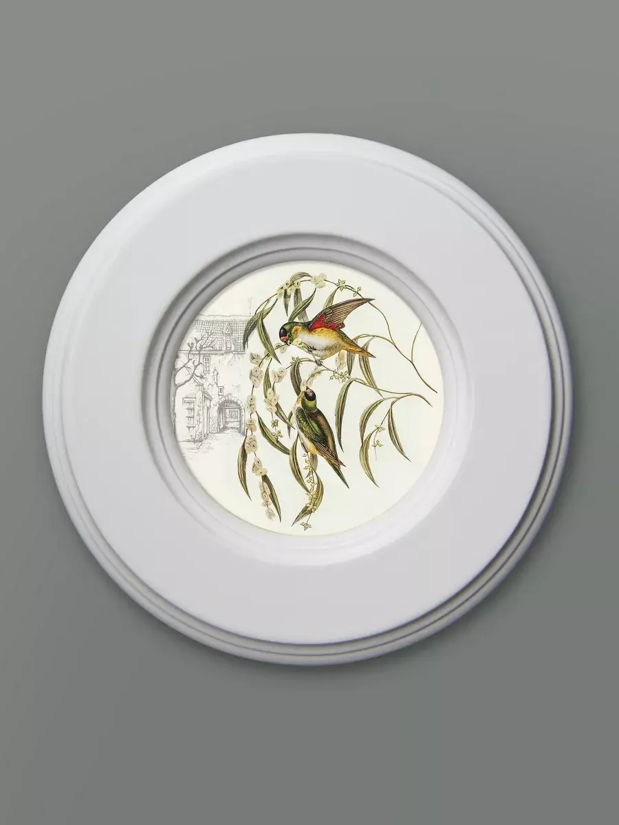 "Птички" в круглой деревянной раме, диаметр 17,5 см