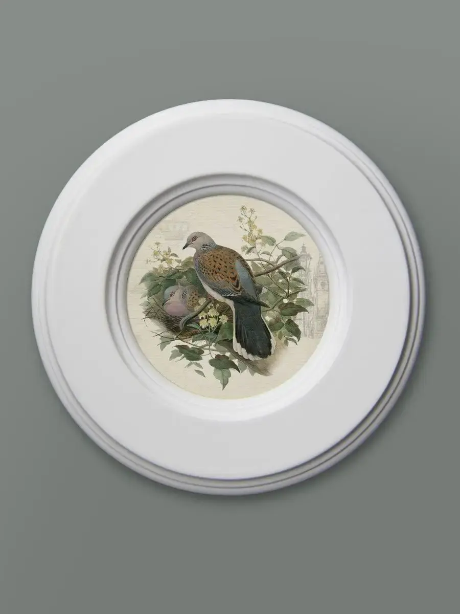 "Птички" в круглой деревянной раме, диаметр 17,5 см