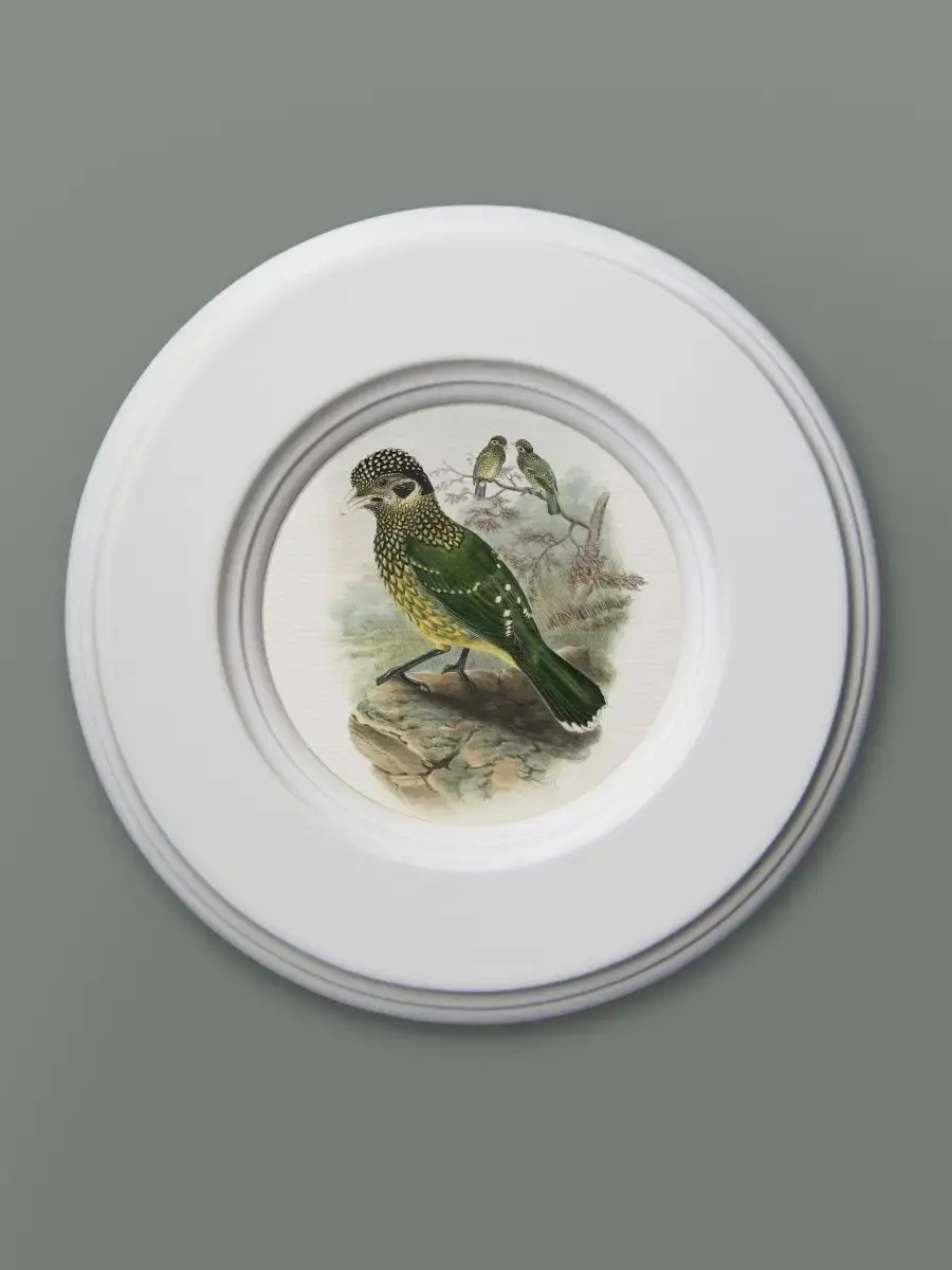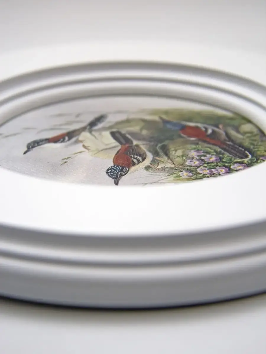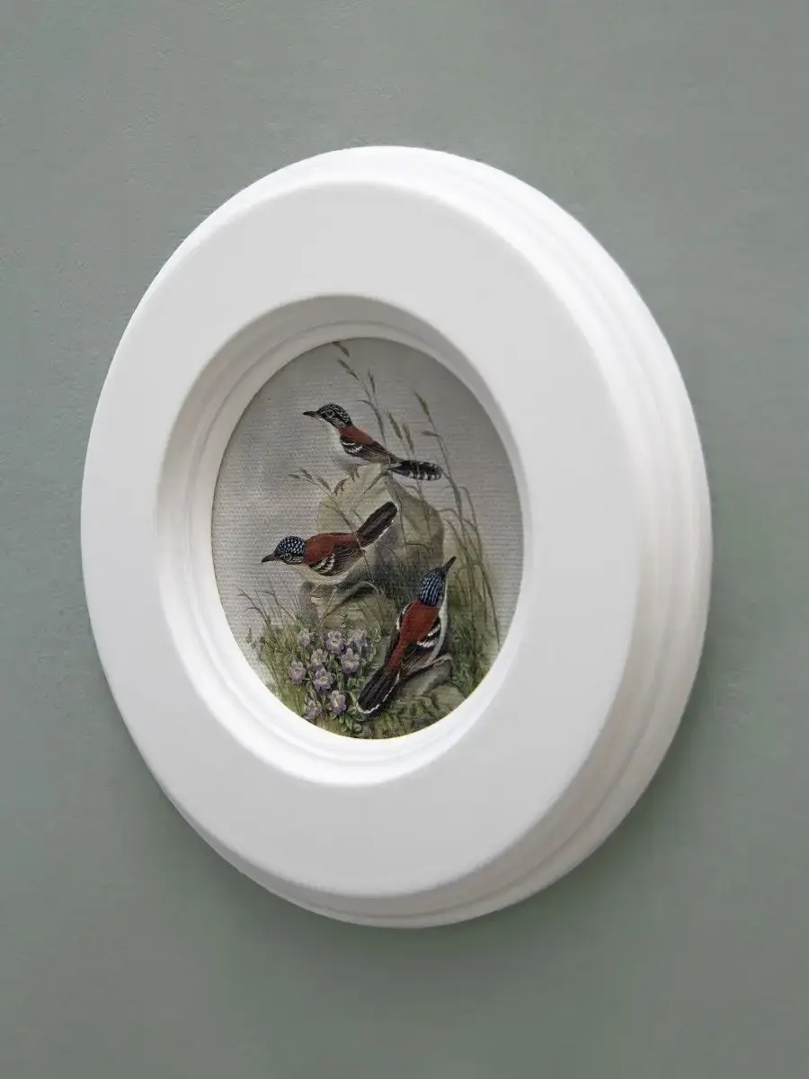 "Птички" в круглой деревянной раме, диаметр 17,5 см