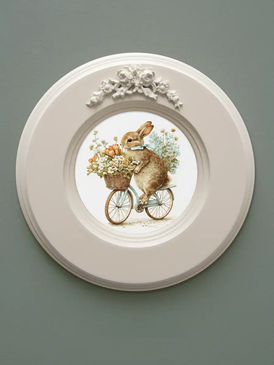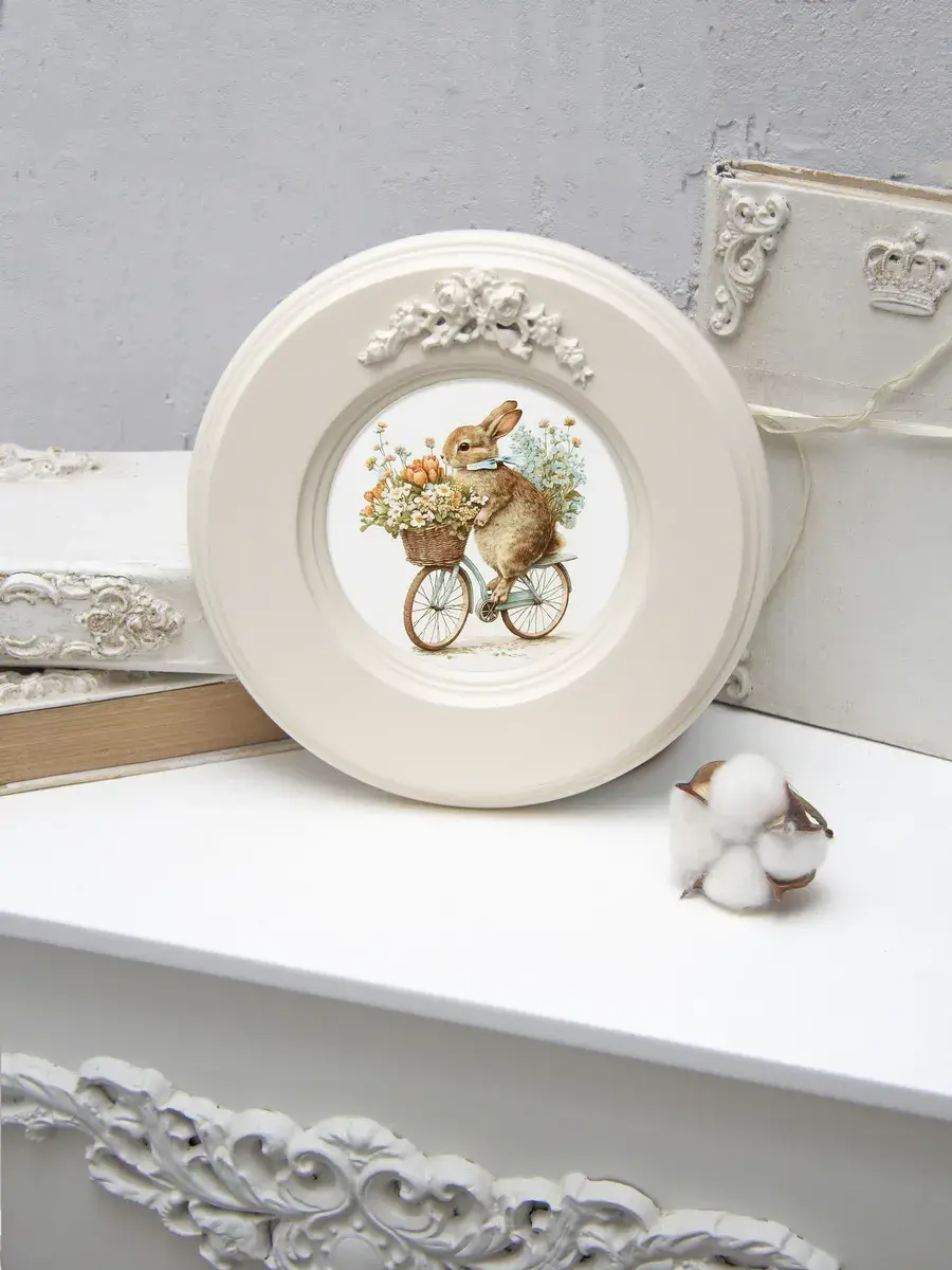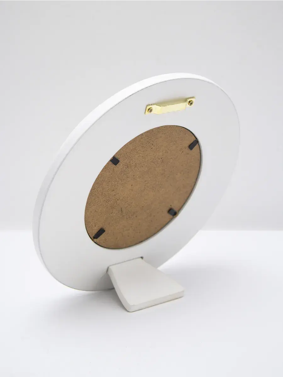 Рама с лепниной изготовлена из цельного листа МДФ 16 мм, не имеет зазоров и стыков. Окрашена экологичной акриловой эмалью в молочный цвет. Диаметр картины 17,5 см, диаметр изображения 9 см.