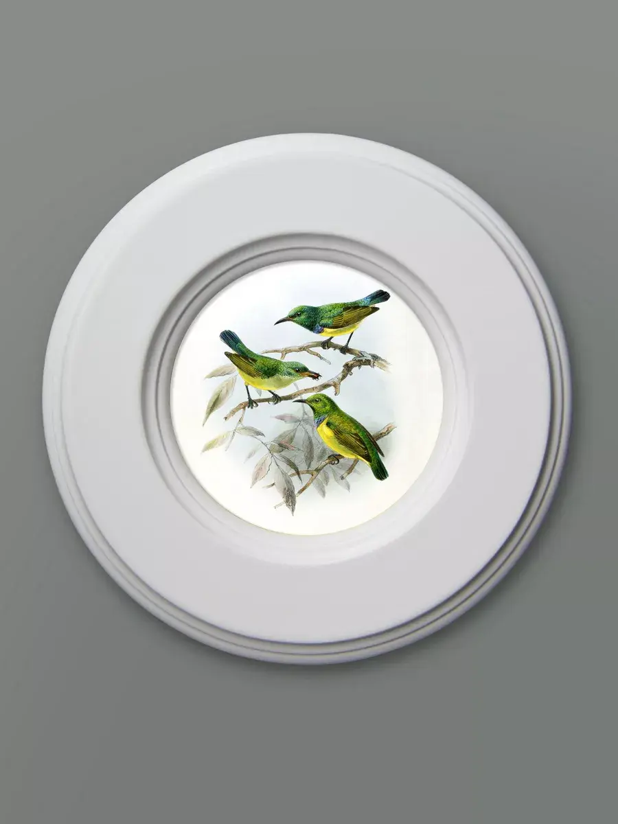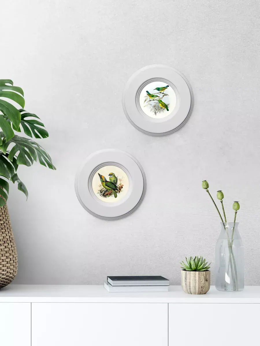 "Птички" в круглой деревянной раме, диаметр 17,5 см