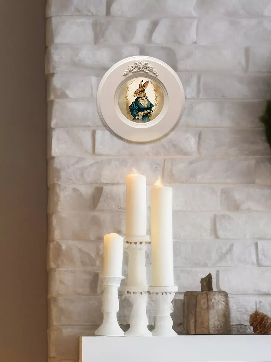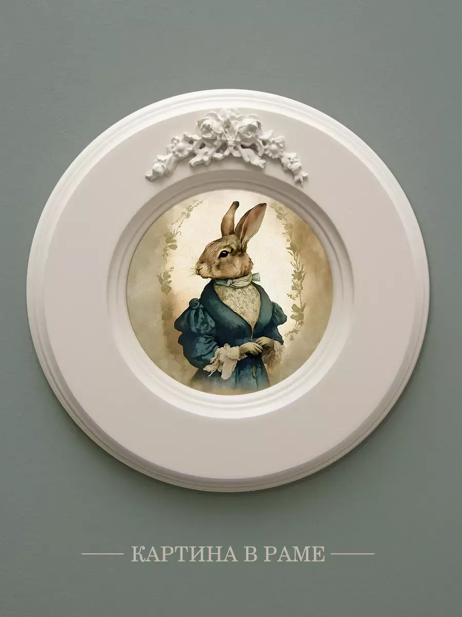 Рама с лепниной изготовлена из цельного листа МДФ 16 мм, не имеет зазоров и стыков. Окрашена экологичной акриловой эмалью в молочный цвет. Диаметр картины 17,5 см, диаметр изображения 9 см.