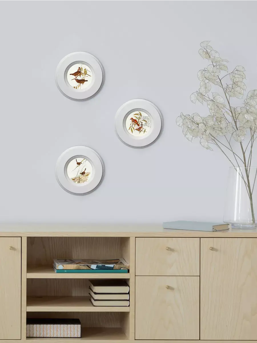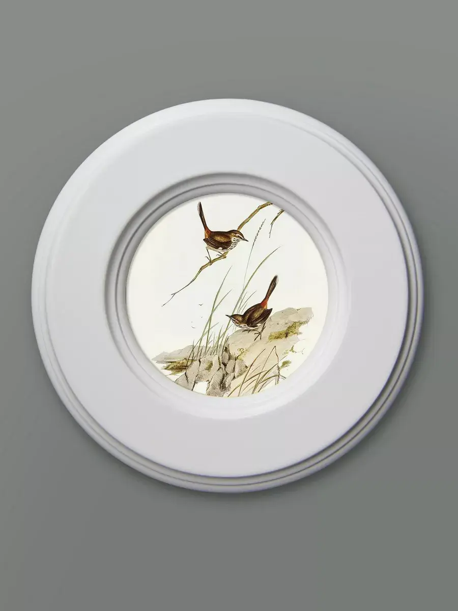 "Птички" в круглой деревянной раме, диаметр 17,5 см