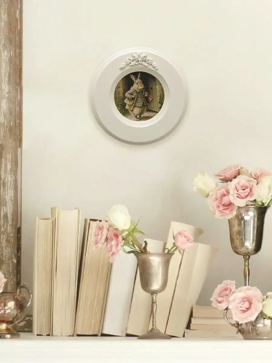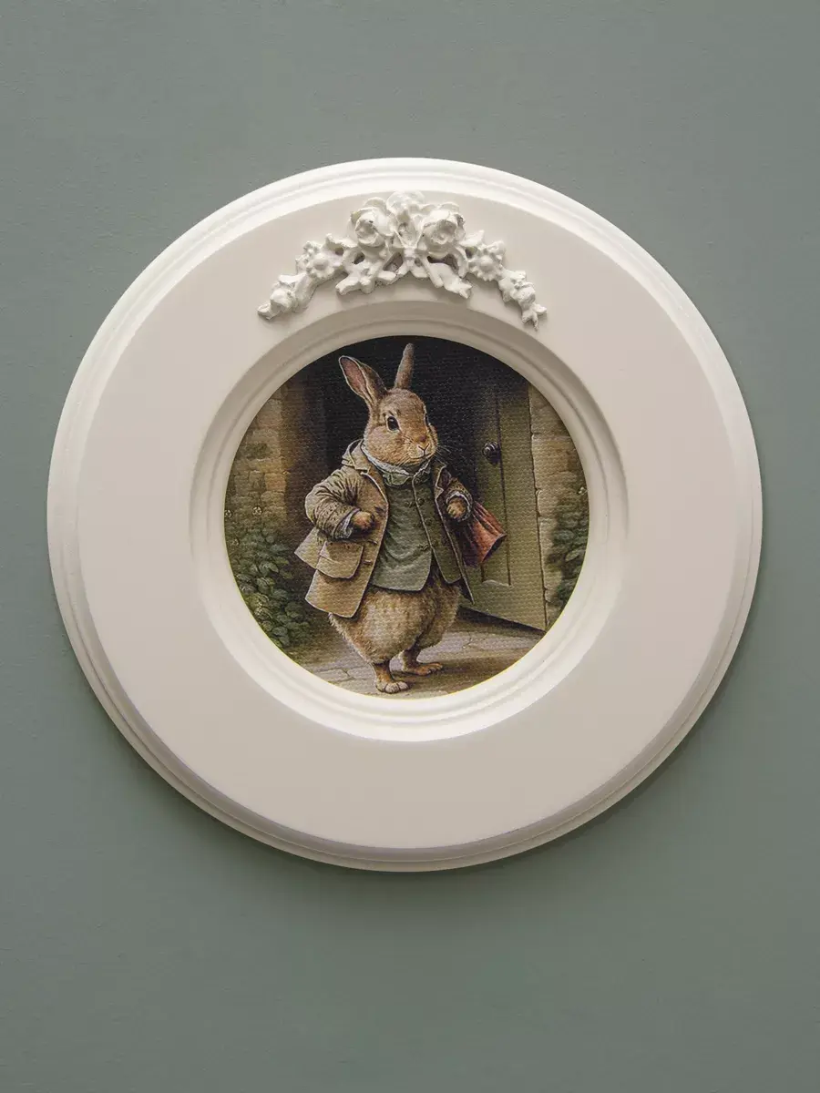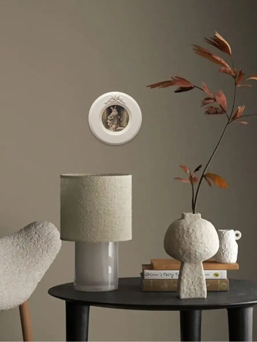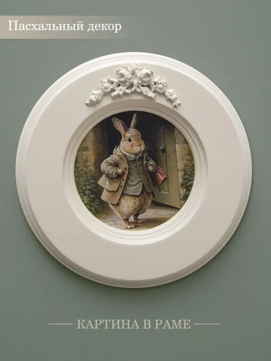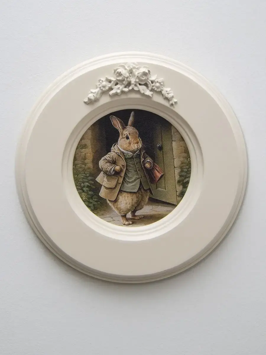 Рама с лепниной изготовлена из цельного листа МДФ 16 мм, не имеет зазоров и стыков. Окрашена экологичной акриловой эмалью в молочный цвет. Диаметр картины 17,5 см, диаметр изображения 9 см.