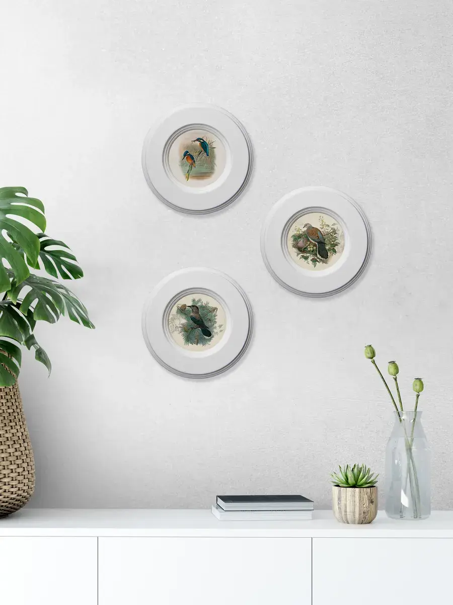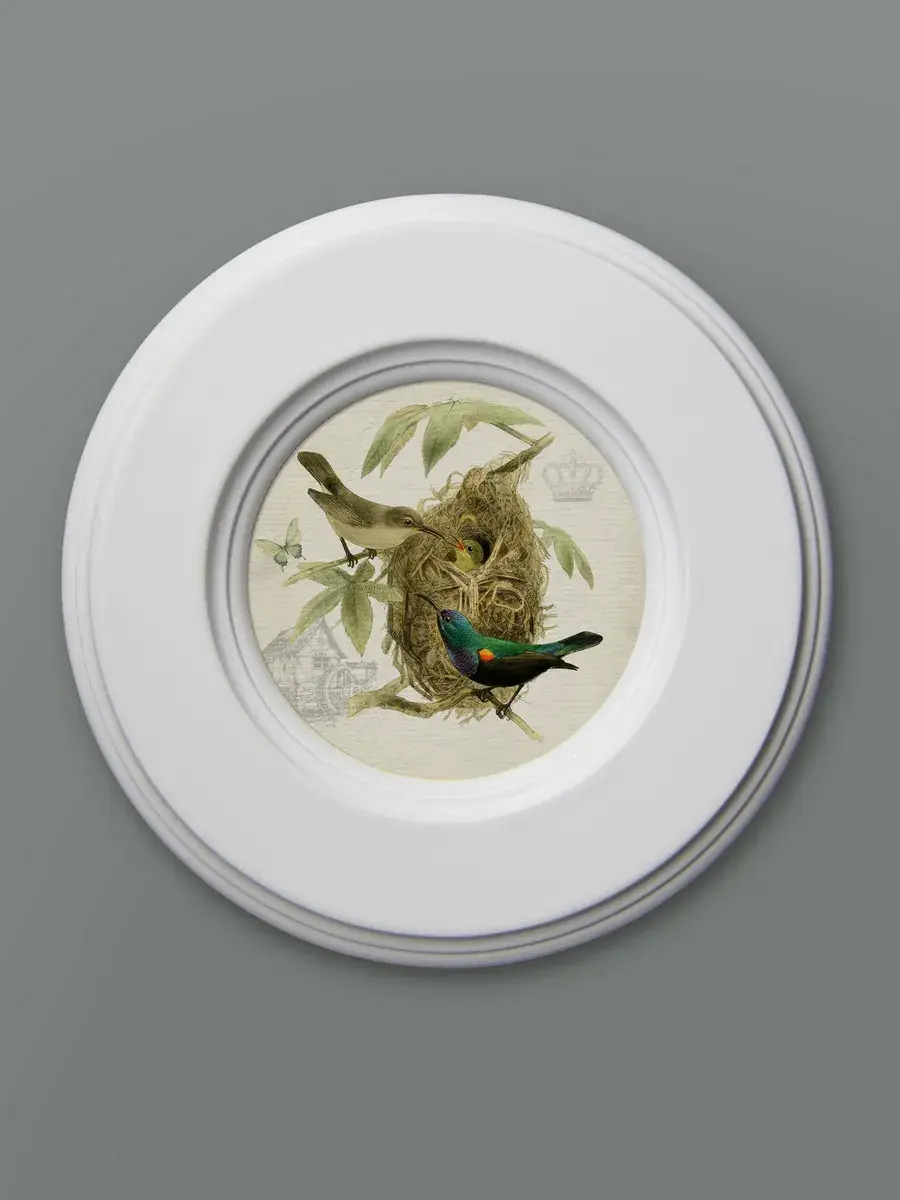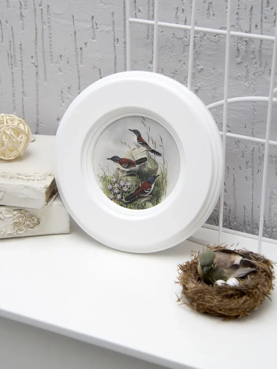 "Птички" в круглой деревянной раме, диаметр 17,5 см