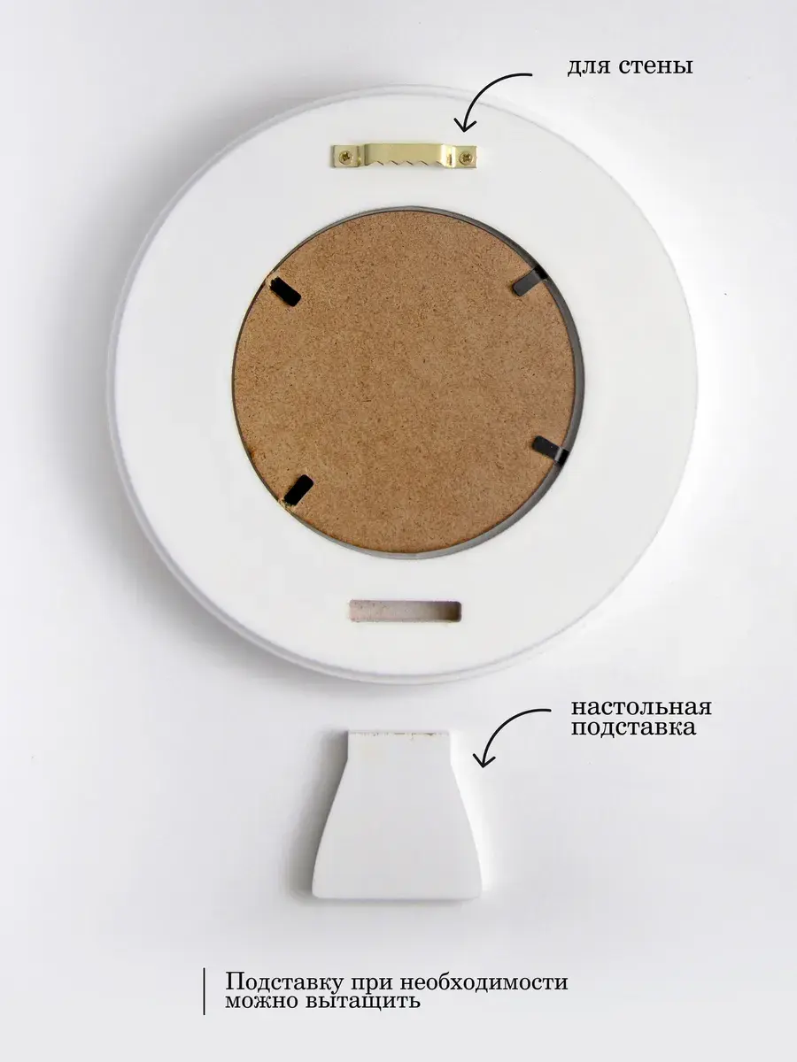 Картина напечатана на натуральном холсте, покрыта матовым лаком в круглой белой раме станет прекрасным украшением интерьера. Множество вариантов дает возможность создать собственную коллекцию. Рама изготовлена из цельного листа МДФ 16 мм, не имеет зазоров и стыков. Окрашена экологичной акриловой эмалью в белый цвет. Диаметр картины 17,5 см, диаметр изображения 9 см. Крепление для стены и для установки на стол в комплекте.