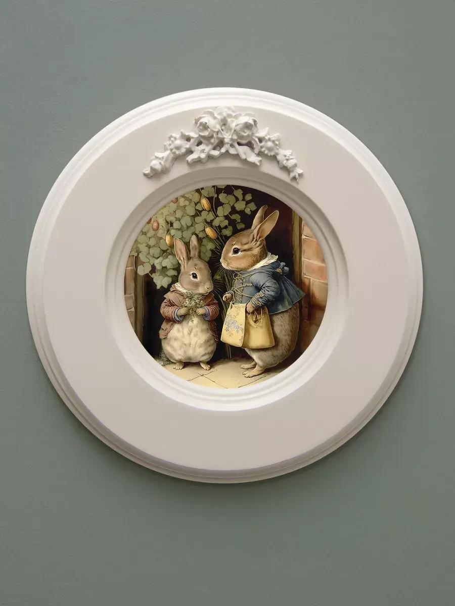 Рама с лепниной изготовлена из цельного листа МДФ 16 мм, не имеет зазоров и стыков. Окрашена экологичной акриловой эмалью в молочный цвет. Диаметр картины 17,5 см, диаметр изображения 9 см.