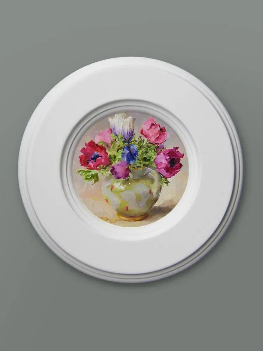 Множество вариантов дает возможность создать собственную коллекцию. Рама изготовлена из цельного листа МДФ 16 мм, не имеет зазоров и стыков. Окрашена экологичной акриловой эмалью в белый цвет. Диаметр картины 17,5 см, диаметр изображения 9 см. Крепление для стены и установки на стол в комплекте.