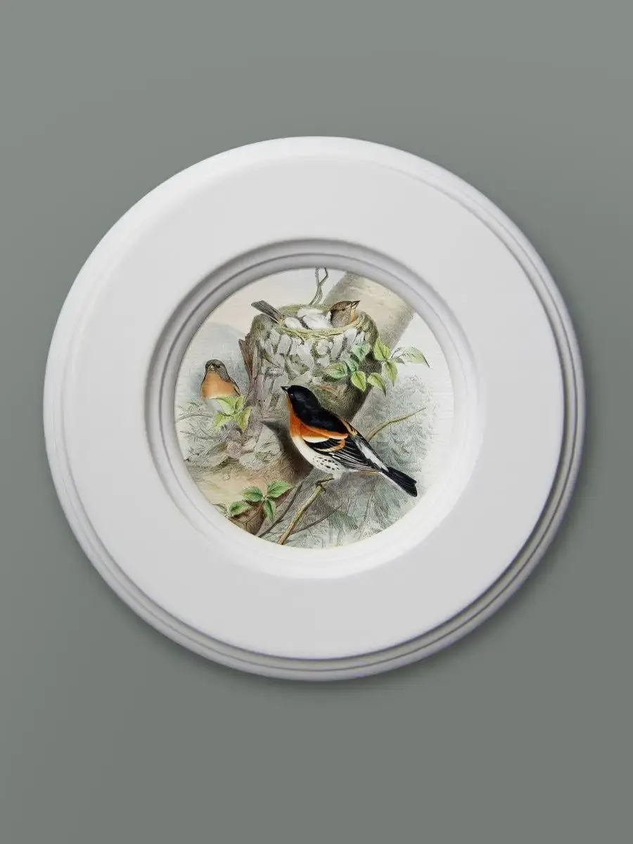 "Птички" в круглой деревянной раме, диаметр 17,5 см