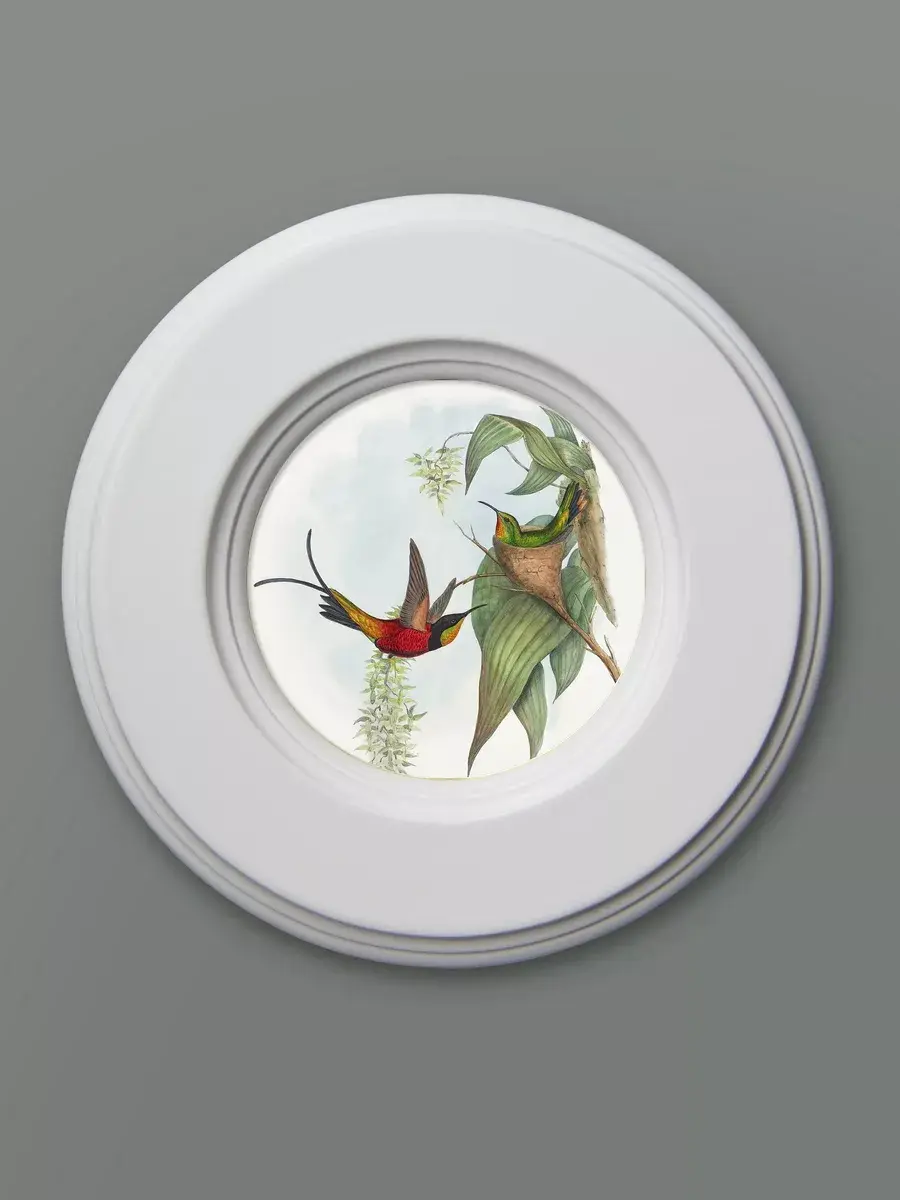 "Птички" в круглой деревянной раме, диаметр 17,5 см