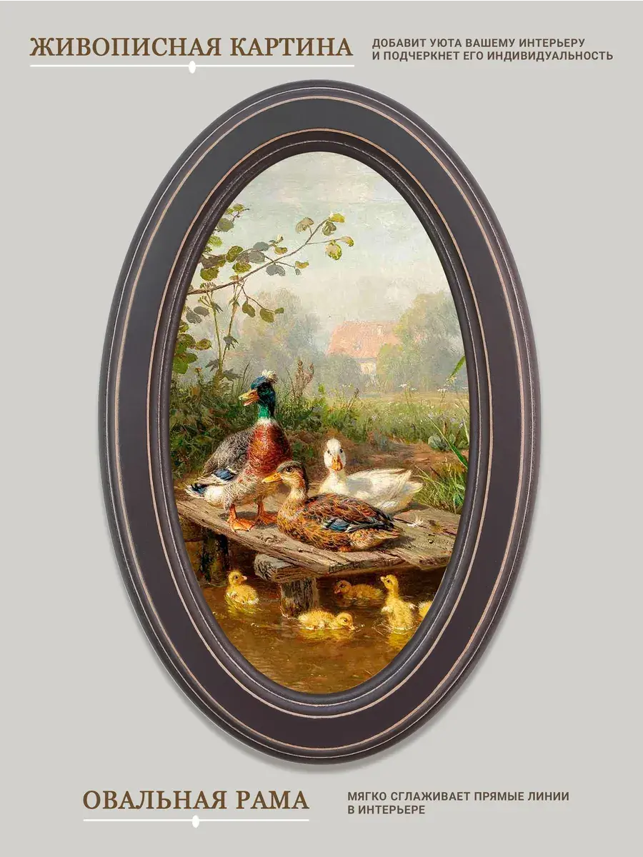 Настенный декор в нежных пастельный тонах. Картина напечатана на натуральном холсте, покрыта матовым лаком, оформлена в овальную коричневую раму с эффектом состаривания.