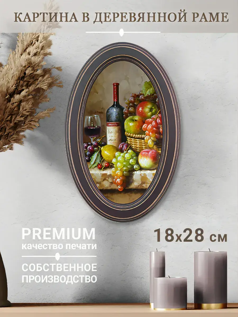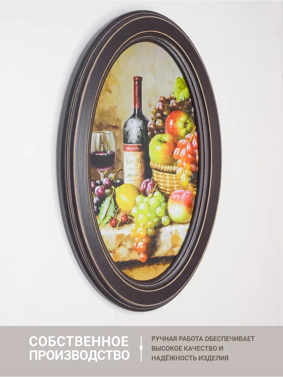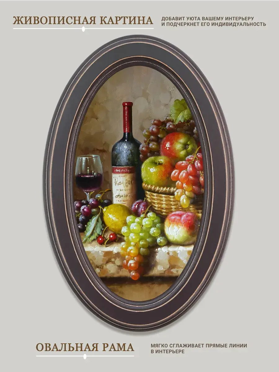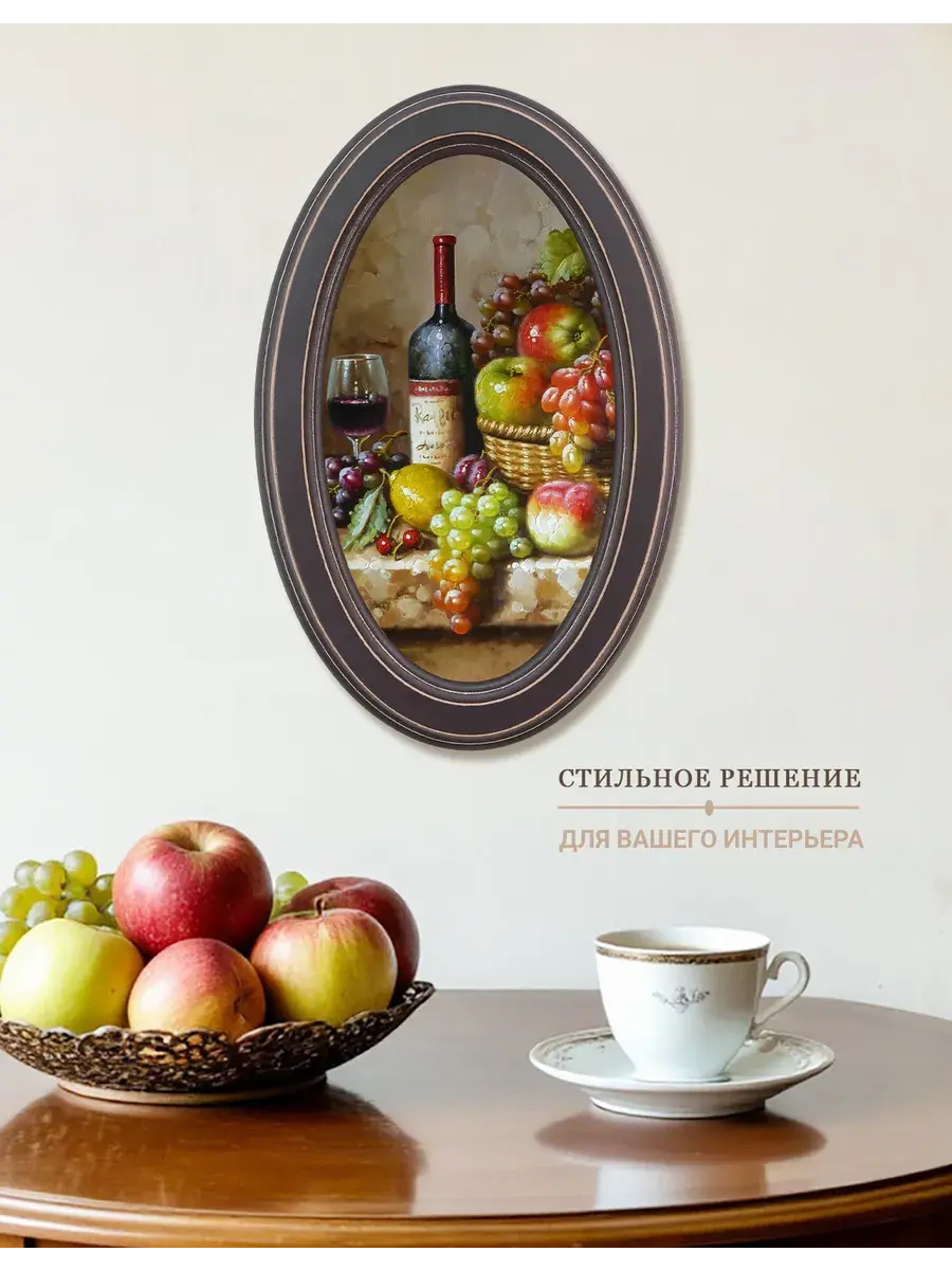 Настенный декор в нежных пастельный тонах. Картина напечатана на натуральном холсте, покрыта матовым лаком, оформлена в овальную коричневую раму с эффектом состаривания.