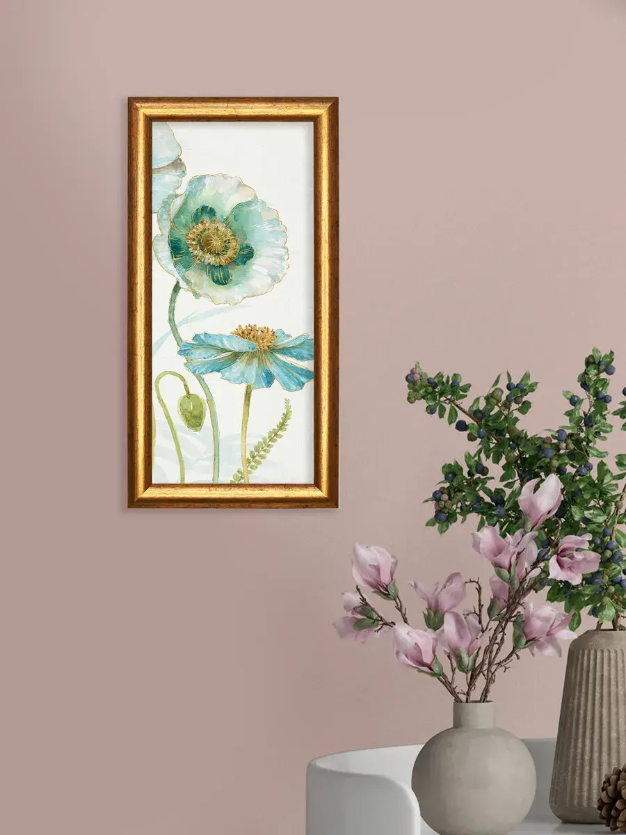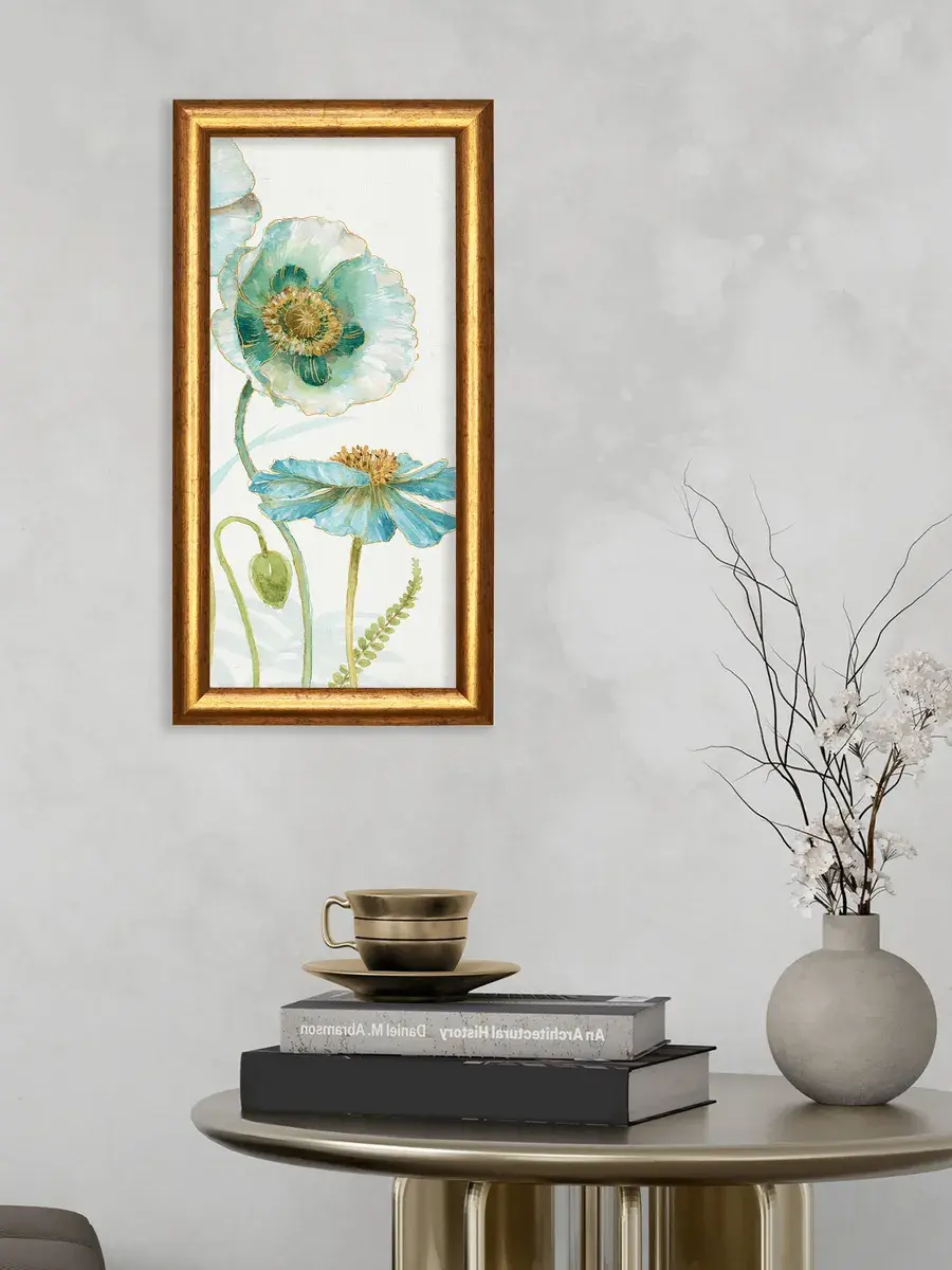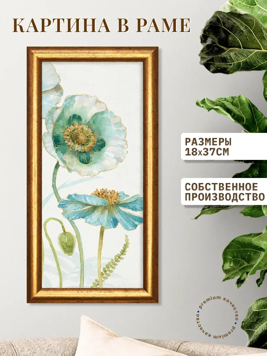 Картина напечатана на натуральном холсте, покрыта лаком. Золотая багетная рама по периметру. Размер картины с рамой 18*37 см.