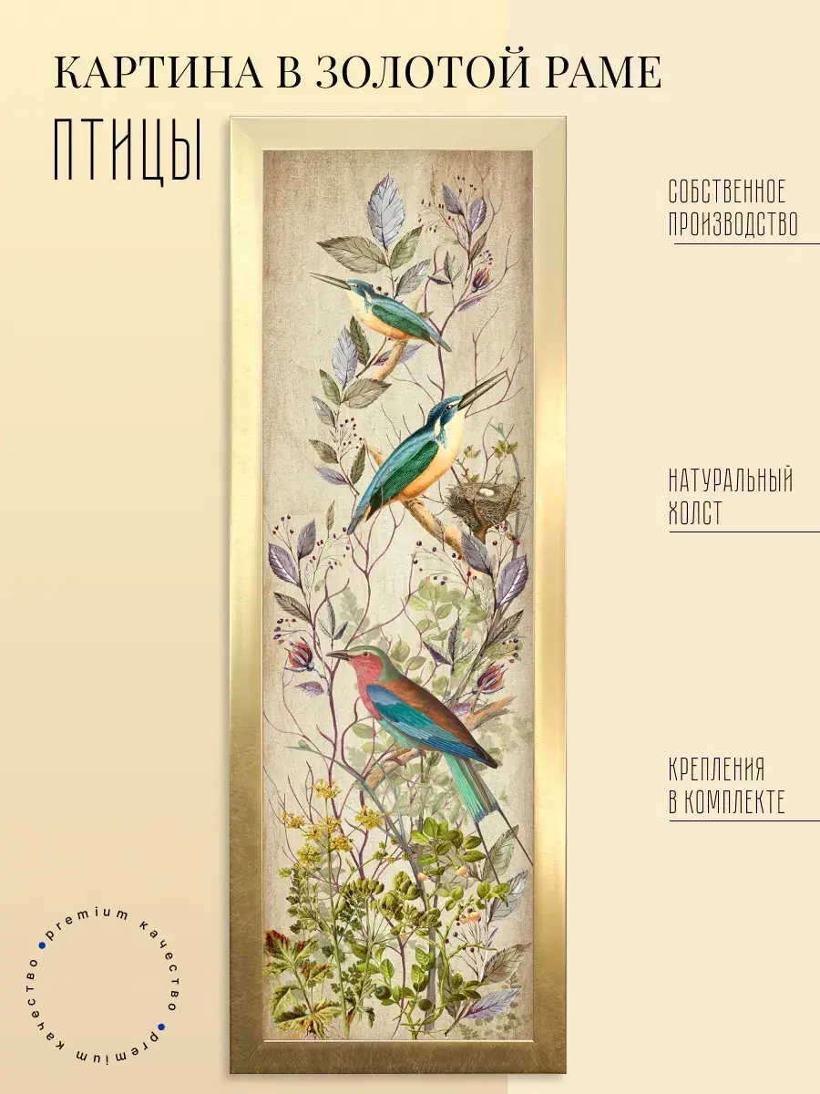 Светлая и изящная интерьерная картина на стену на холсте размером 20*54 см от бренда Elenadecor станет настоящим украшением вашего дома. Сюжет с изображением птиц добавит теплоту и уют в любую комнату, будь то гостиная, детская, прихожая, спальня или кухня. Благодаря натуральному холсту и высокому качеству печати, каждая деталь выглядит ярко и живо, а матовое покрытие защищает изображение от выцветания, сохраняя его первозданный вид на долгие годы.
