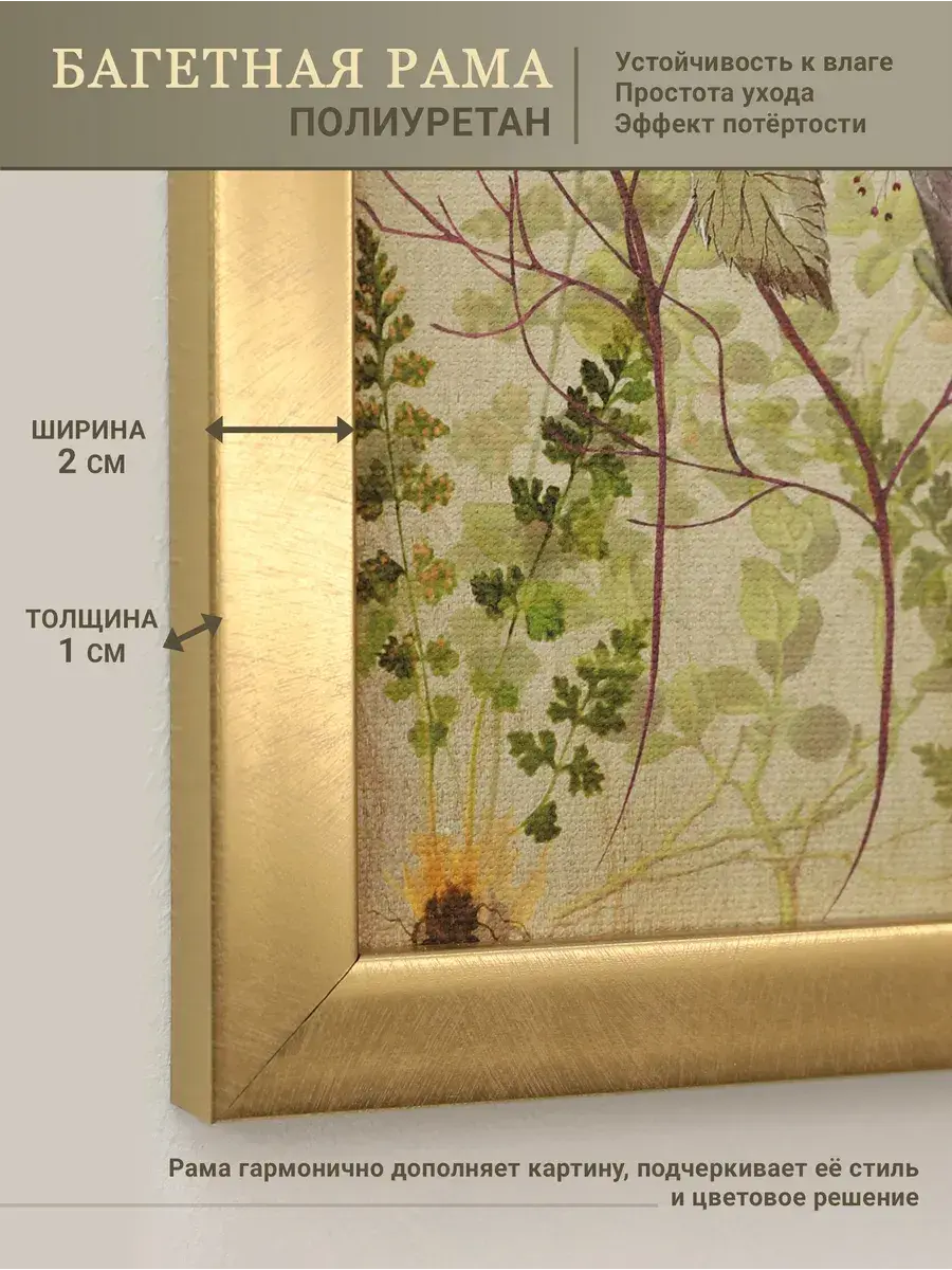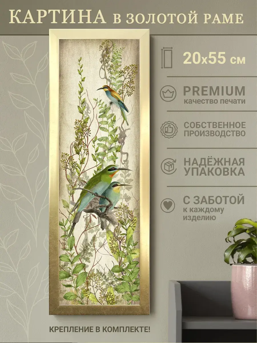 Светлая и изящная интерьерная картина на стену на холсте размером 20*54 см от бренда Elenadecor станет настоящим украшением вашего дома. Сюжет с изображением птиц добавит теплоту и уют в любую комнату, будь то гостиная, детская, прихожая, спальня или кухня. Благодаря натуральному холсту и высокому качеству печати, каждая деталь выглядит ярко и живо, а матовое покрытие защищает изображение от выцветания, сохраняя его первозданный вид на долгие годы.