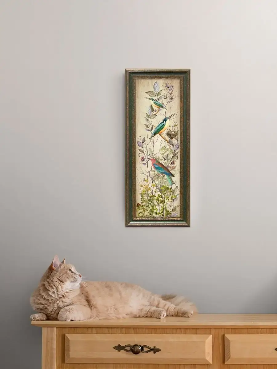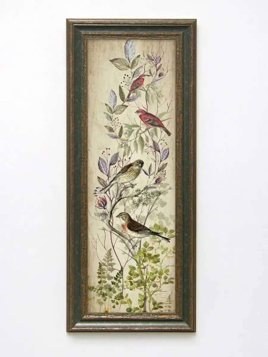 Серия картин "Дивные птички" станет прекрасным подарком и украшением интерьера квартиры, дачи или загородного дома. Эта картина станет стильным акцентом в вашем интерьере. Она идеально подойдет для оформления стен в различных помещениях: от кухни до спальни, от гостиной до прихожей. Настенное панно выполнено на холсте и отличается яркими цветами, изображающими природу, что придаст уют и свежесть любому дому или квартире. Декоративное оформление в рамке добавит элегантности и завершенности, делая картину не только предметом декора, но и важной частью атмосферы пространства. Это решение отлично впишется в интерьер офиса, зала или любой комнаты, создавая ощущение счастья и гармонии. Пусть данное предметы искусства придаст вашему дому индивидуальность и изысканный стиль.