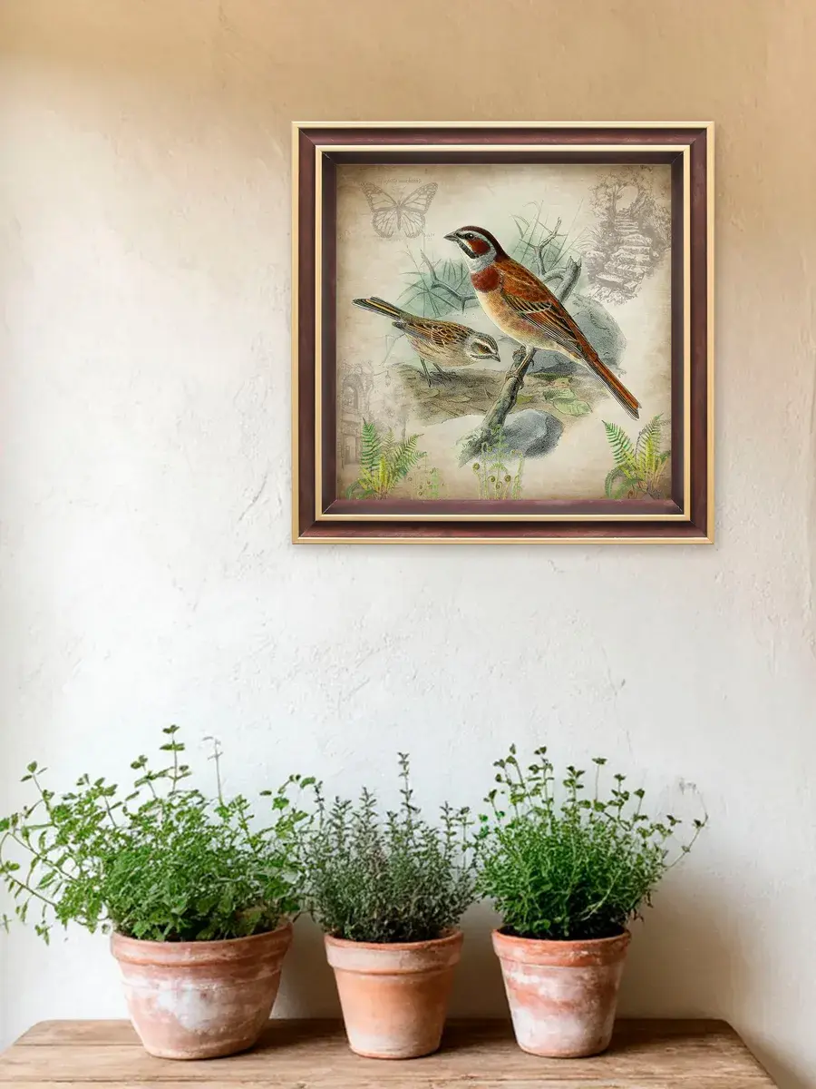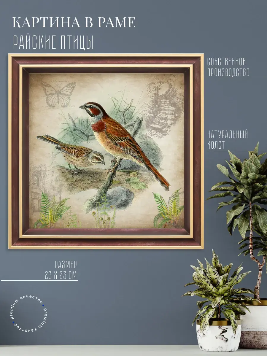 Чудесная картина, напечатанная на натуральном холсте, станет центром притяжения внимания в вашем доме. Райские птички привнесут в ваш интерьер ощущение покоя и умиротворенности.