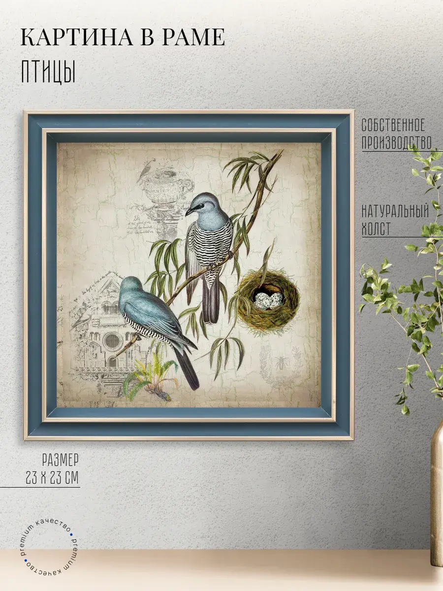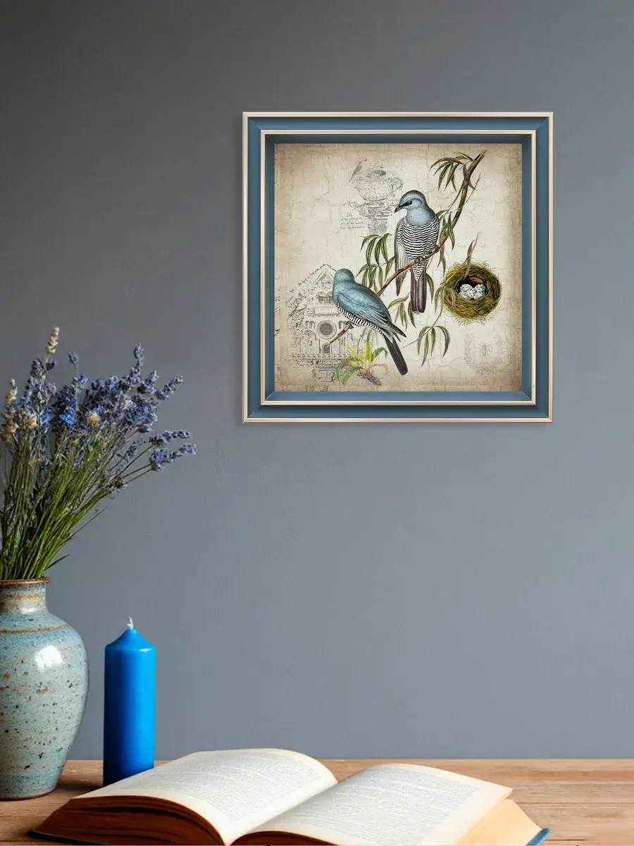 Чудесная картина, напечатанная на натуральном холсте, станет центром притяжения внимания в вашем доме. Сказочные птички привнесут в ваш интерьер ощущение покоя и умиротворенности.