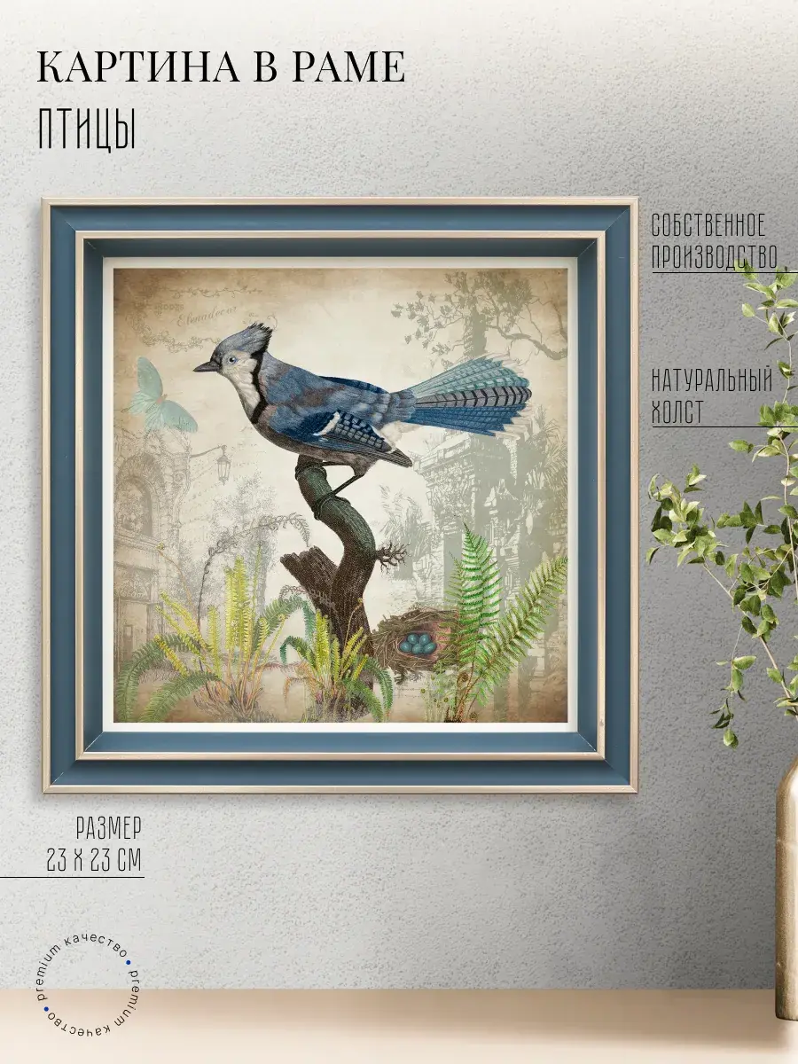 Чудесная картина, напечатанная на натуральном холсте, станет центром притяжения внимания в вашем доме. Сказочные птички привнесут в ваш интерьер ощущение покоя и умиротворенности.